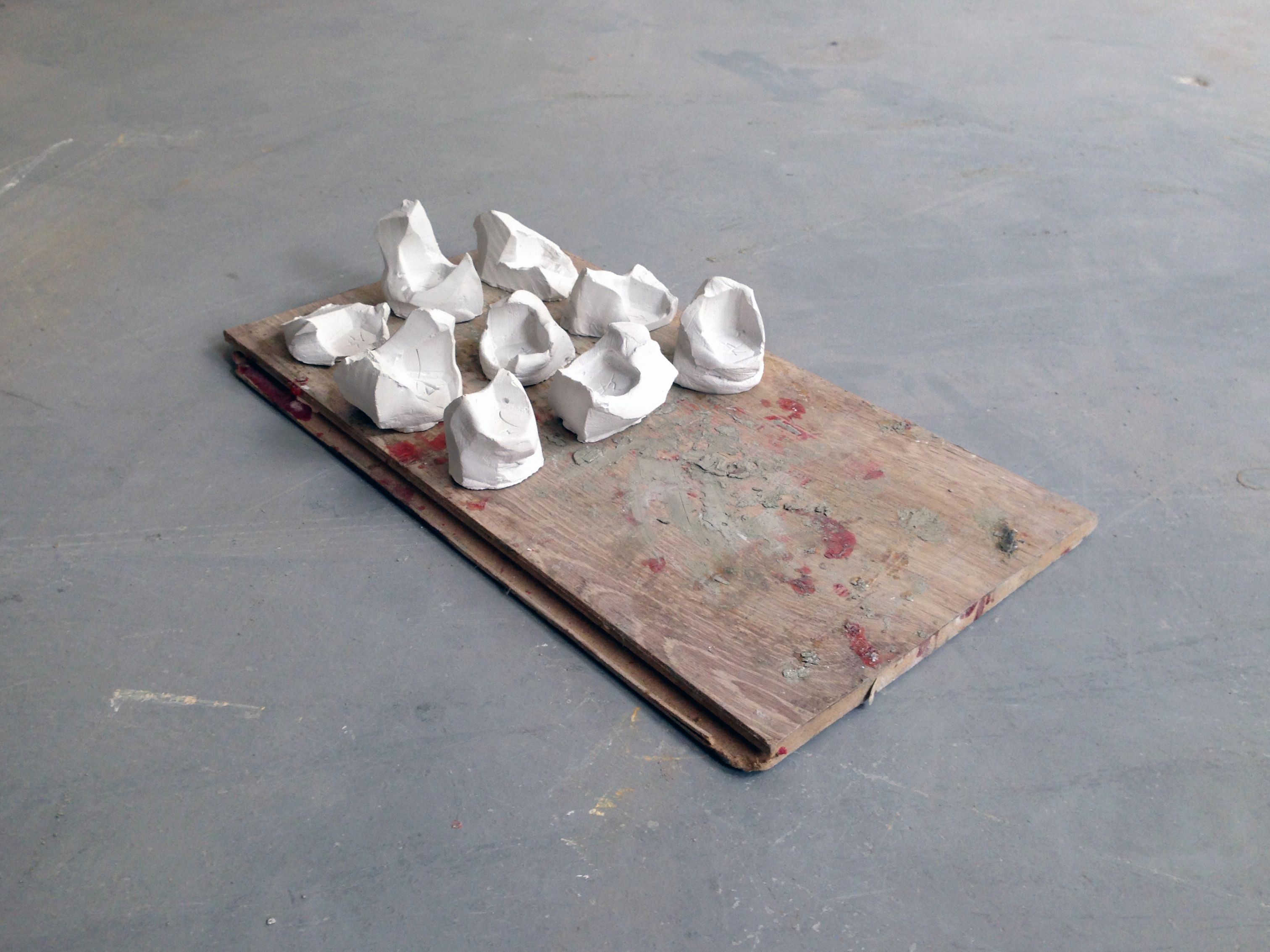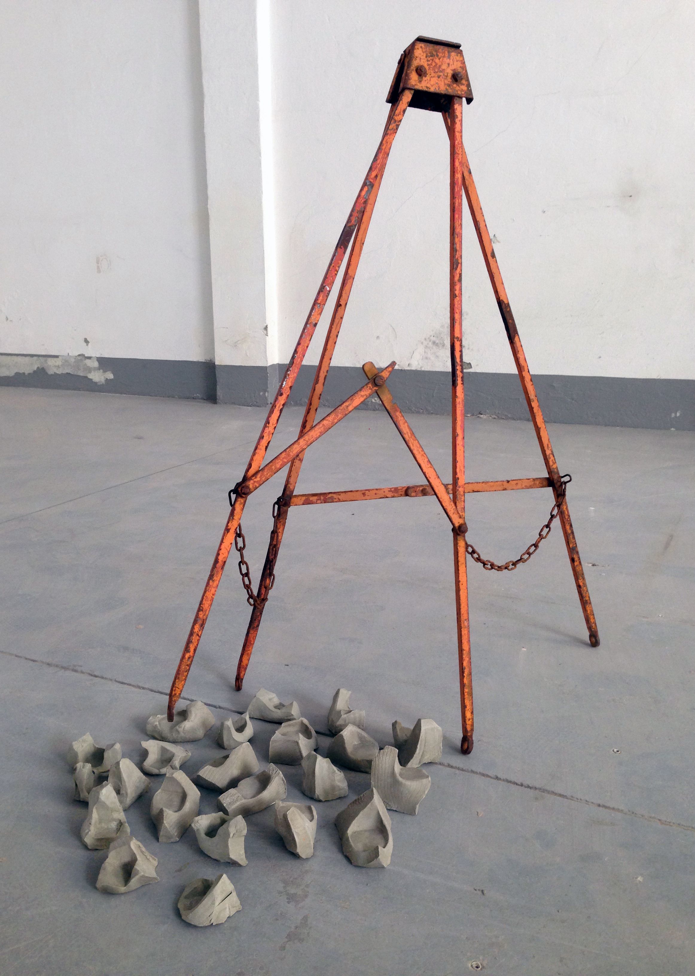 Attraverso l’Arte indago le sostanze immateriali. Questo percorso di ricerca è proiettato alla metafisica, trova la sua definizione nelle caratteristiche non visibili e dà corpo ad idee estetiche disinteressate a compiacere la vista ma volte ad approfondire. I limiti sono i confini ontologici di nascita e morte, il fine la costruzione di un altrove poetico, aleatorio e privo di singolarità, che possa superarli. Lavoro sotto la definizione di gioco, perché non esiste un tratto che accomuni ogni gioco in maniera indistinta ed è perciò un concetto aperto e non orientabile. Oltre al gioco, le favole, come espediente narrativo libero. Nella prassi creo artefatti-tramite tra due linguaggi biunivoci e installazioni sintetiche per indagare i concetti ricorrenti di traduzione, spostamento, variazione e assenza. Pozzanghere è una scultura di trenta pezzi realizzati in bronzo, l’opera lavora sulla ripetizione di una forma dissimile caratterizzata da geometrie solide impastate su se stesse dal colpo di un martello. La poetica di Pozzanghere deriva dalla morfologia urbana dell’abolita Provincia di Milano dove porzioni più o meno grandi di umanità ristagnano separate dalla geometria dei campi e disposte in un eco di somiglianze. // Eracle Dartizio (nato a Vaprio d’Adda nel 1989). Ha frequentato il corso di graphic design alla Nuova Accademia di Belle Arti di Milano (2008 - 2012). Dal 2013 vive a Monza e lavora a Milano, dove è stato in residenza presso la Fonderia Artistica Battaglia (Marzo 2014). Nel 2014 ha vinto la targa d’oro per la grafica al Premio Arte Mondadori. Nel 2015 il suo lavoro è stato presentato al contest “Milano Città Mondo” presso la Fabbrica Del Vapore di Milano.