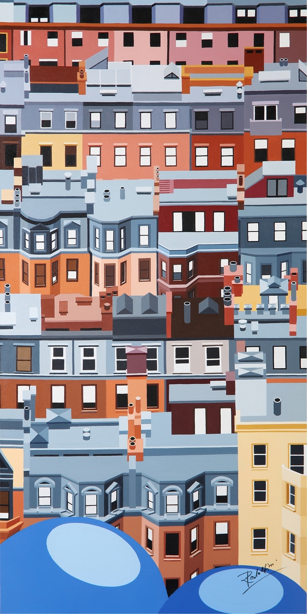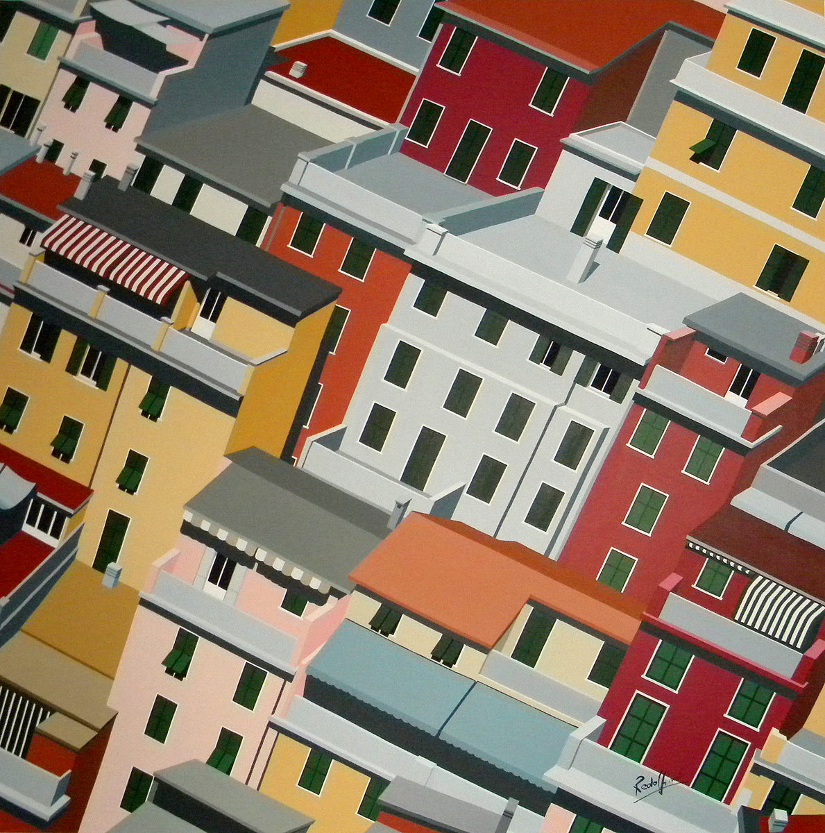 Mariangela Redolfini è nata il 4 novembre del 1957 a Borgoforte (MN), diplomata presso il Primo Liceo Artistico di Torino e laureata in Architettura presso la facoltà del Politecnico del capoluogo, ha collaborato per un breve periodo con alcuni studi di architettura. Ha realizzato insieme ad altri autori, il manifesto e la copertina del catalogo per la mostra La scuola di Wagner 1894-1912 IDEE -PREMI E-CONCORSI. Attualmente vive a Torino dove lavora come docente presso la scuola media Turoldo. Nel corso degli anni l’artista si è dedicata sia al disegno dal vero di monumenti architettonici e di spazi urbanizzati, sia allo studio della figura umana restituita attraverso rapidi schizzi a china e acquerello. Nell’ultima parte del suo percorso artistico il suo interesse si è decisamente spostato dal disegno alla pittura, sperimentando in particolare l’acrilico su tela. Dal 2007 ha affinato la sua tecnica, che si caratterizza per una stesura del colore completamente piatta, che crea un contrasto tra la realizzazione “astratta ” e la narrazione di elementi figurativi. I l colore sempre vivace e brillante è l’elemento unificante delle ultime tematiche affrontate: paesaggi, fiori e paesaggi urbani.