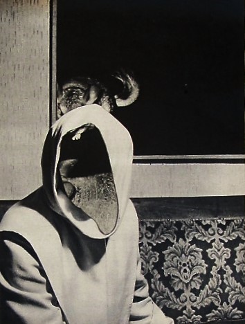 .Uno stato d’attesa,….una donna seduta,ripescata da un archivio d’immagini…. Colpito profondamente da essa , a dispetto dell’apparente ed innocente postura d’ attesa, l’immagine, nasconde alcune insidie estetiche poco rassicuranti.(la spilletta a forma di scarabeo,il polso con orologio da uomo,le unghie delle mani pittosto brutali,nonché,il taglio stesso del vestito). Lentamente un ambiente ed un istante che si faceva col tempo inquietante. .Naturalmente,un operazione di asporto d’identità,non avrebbe fatto altro che aumentare questa sensibile e sottile percezione.Ho cercato quindi di darle un contesto ed un contrasto, dove questi elementi perturbatori non ne fossero i protagonisti,aggiungendo uno scenario del tutto estraneo a questa visione.Un uomo che raccoglie il proprio cane nel buio….un atteggiamento tenero per rendere quel buio”un occasione” in contrasto con la blindata posizione della donna.Credo con ciò di aver preservato un certo “senso di mistero”….Mistero,che spesso identifichiamo con uno stato di paura(raramente lo si incontra per ciò che è….mistero appunto),inquinandolo per ciò che non è, o che non solo è.Questo è ciò su cui lavoro da qualche anno.L’esperienza zen(meditazione e filosofia Buddista) e l’amore per le immagini prevalentemente provenienti dal nostro periodo d’oro del cinema(Neorealismo Italiano),ma non solo.Credo che un immagine,abbia la forza di racchiudere lo “Zeitgeist”(spirito del tempo)di un epoca.