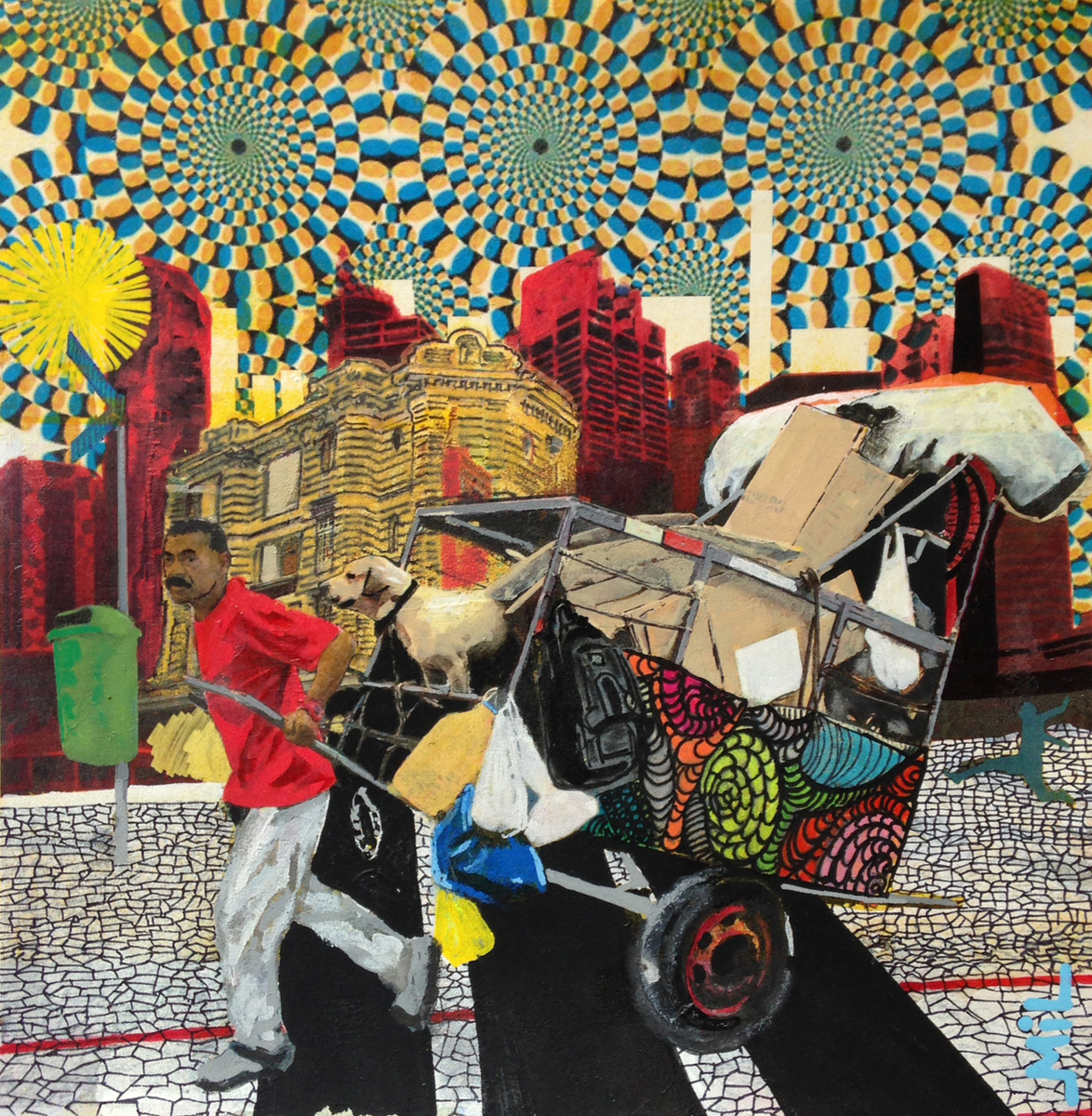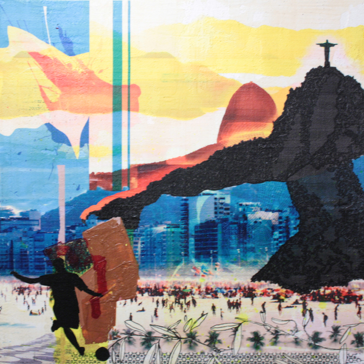 Milene Gandolfi, aka Mil, was born in 1980 in Sao Paulo, Brazil. The sensory perception of each experience was for her an inexhaustible source of inspiration. Conflicting thoughts, landscapes and rhythms of life in turn nourished her creativity. Mil therefore went to study design at the in Milan Polytechnic. Returning to Brazil she tool stock of and contemplated the uniqueness of her native environment. And so painting naturally imposed itself as the best way to express beauty. Sometimes critical, sometimes funny and emotional, her creations reflect the facets of her identity. She suggests a subtle reflection on simple beauty through icons, portraits or scenes of typical brazilian life. The artist seeks to find harmony between these elements and extract the poetic dimension. Her paintings encourage the viewer to reflect on the motto of her country ”Order and Progress”. Through her creations, Mil shares her passion for nature, culture, places and human behaviour, revealing both the balance and contrast. Mil loves experimenting with new techniques. She mixes them in search of colours and the effects of unusual materials. Based on her lines of thought, she performs extensive research a topic to build a bank of information and images. Once the ”thematic atmosphere”is established, she uses computer graphics and collage techniques to transcribe it. She then paints over the composition with gouache or acrylic. The artist compares the messy mixing of layers and techniques to the Brazilian identity, a product of successive waves of migration from around the world. Much like her country, so her paintings brilliantly produce a harmony of colours and tend to make us awake of the scope of our interaction with the world.
