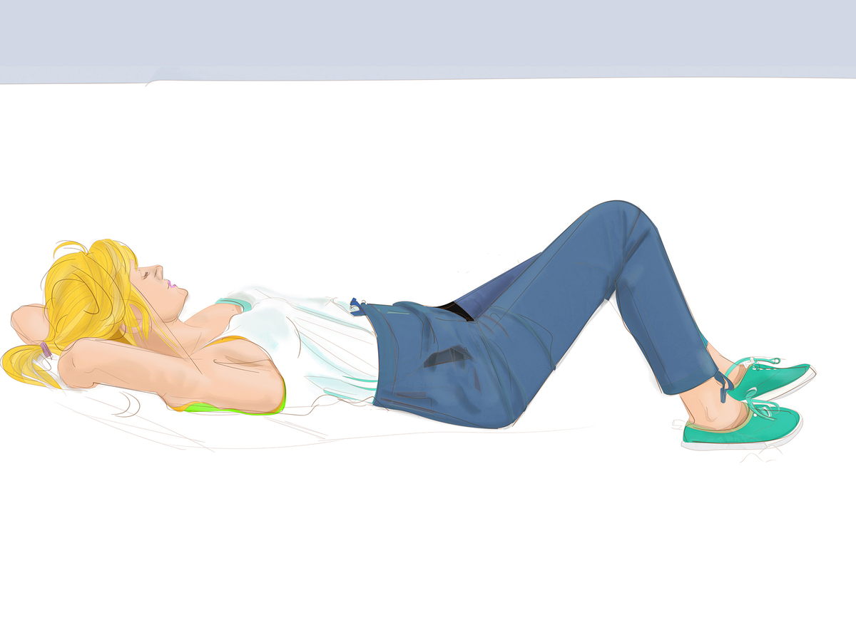 Ultimately this work is a study of colours and lights. The subject, a a young girl walking lonely on a sunny path, appears often in my work. It seems to me that digital art, so naturally adapted to working with primary colours, large backgrounds and flat surfaces, allows for the creation of very elegant images which also have great depth. /