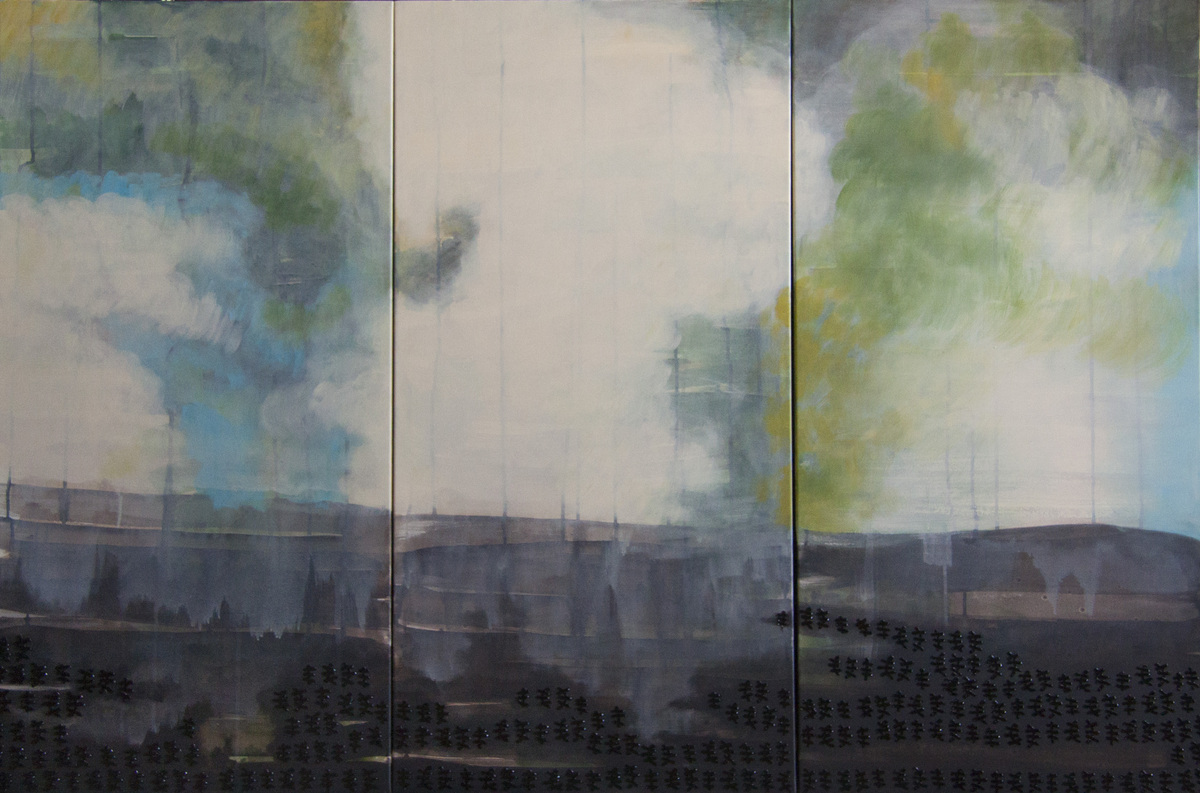 Superando la mera rappresentazione la mia pittura diviene strumento di tesaurizzazione dell’esperienza tra realtà e finzione, memoria e presente. Il tempo passa e segna luoghi, memorie e persone lasciandosi dietro racconti segnici. Post tenebra lux è come un luogo arso, ancora avvolto dai fumi di un fuoco spento, un campo di battaglia a riposo un attimo prima della rigenerazione.