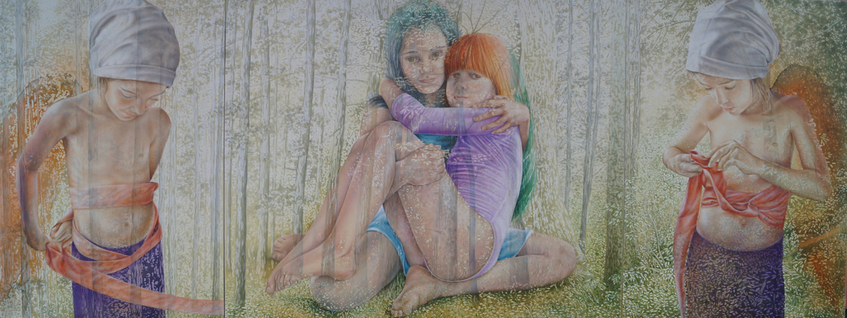 Le figure sono contenute all’interno di uno spazio inteso sia come luogo fisico dell’individuo sia come sede mentale dell’uomo. La foresta e le figure si fondono in un luogo sospeso tra realtà e astrazione, diventando un elemento intermedio tra la terra e il cielo.Gli alberi simboleggiano il legame tra il mondo sotterraneo ( le radici ancorate nel terreno ) e le più alte volte del cielo dove si protendon i rami come a voler raggiungere una dimensione superiore dello spirito.