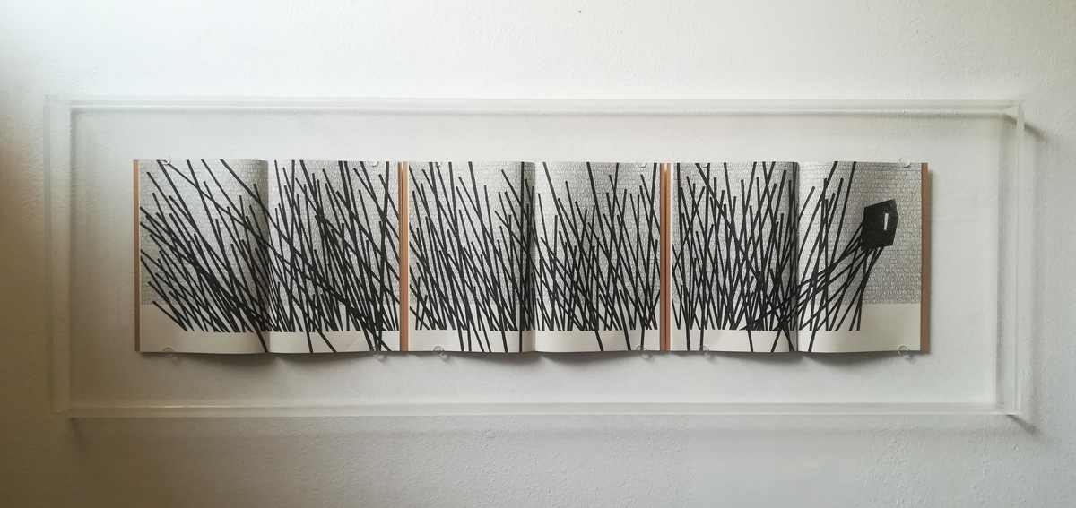 Sto andando a razzo verso l’essenziale. Dei boschi di tempo fa sono rimasti solo dei lunghi tronchi senza rami, forse canne, un canneto, sterpi, groviglio forse ostile e inestricabile, ma anche strumento con il quale difendersi. Forse, nel mio DNA c’è qualcosa di un remoto monaco amanuense, e non solo per lo scrivere che attraversa i miei quaderni, bensì anche per il mondo che rappresento. Forse, prossimamente potrei ritrovarmi ad indagare nella totale astrazione, e non me lo sarei mai aspettato.