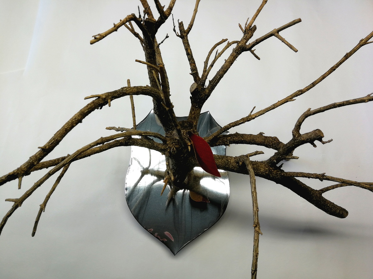 ”About bees” fa parte di un progetto dedicato alla terra. L’uomo sta sperimentando ciò che significa il crollo della sua convinzione di onnipotenza. La Natura ha subìto e subisce la sua follia. Incapace di guardare verso l’altro e verso l’alto, rischierebbe la scoperta d’essere parte di tutto, cellula insieme a miliardi di altre cellule. Guarda la Terra dallo Spazio non come parte di essa ma come uno stolto padrone. Le immagini lo commuovono e lo stupiscono, ma sono emozioni vacue di un istante. Allontanatosi dalla Natura, avvolto nel cemento, lentamente il suo spirito si è atrofizzato e l’aridità lo ha reso incapace di amare se stesso e la vita che lo circonda. Apparentemente senza consapevolezza cammina verso il baratro. Con il pensiero annebbiato da una avidità corrosiva sembra non curarsi delle conseguenze. L’emblema di questa follia sono le api, custodi di vita, messe in croce. Lo specchio alla base del favo riflette l’uomo vittima di se stesso.