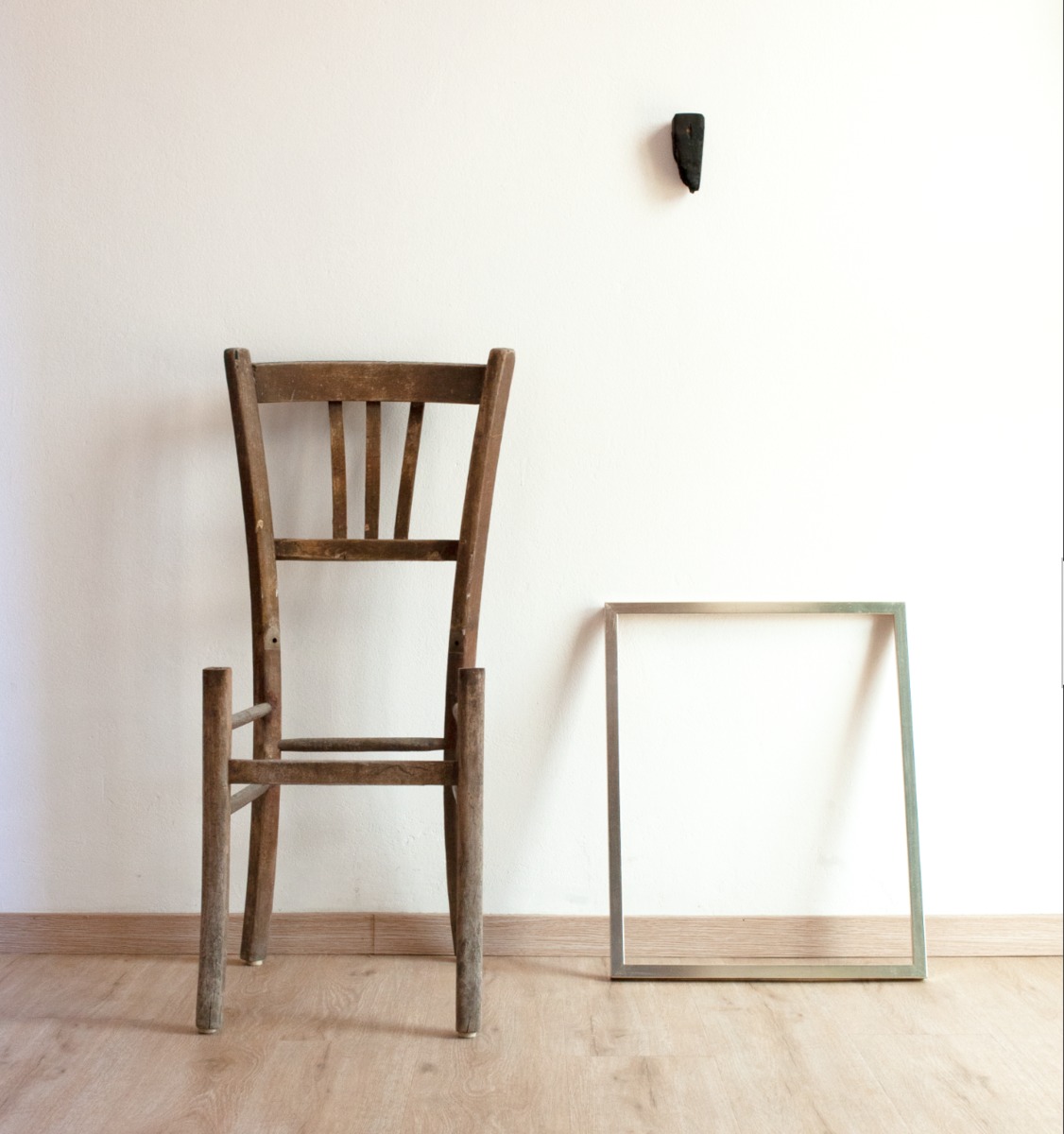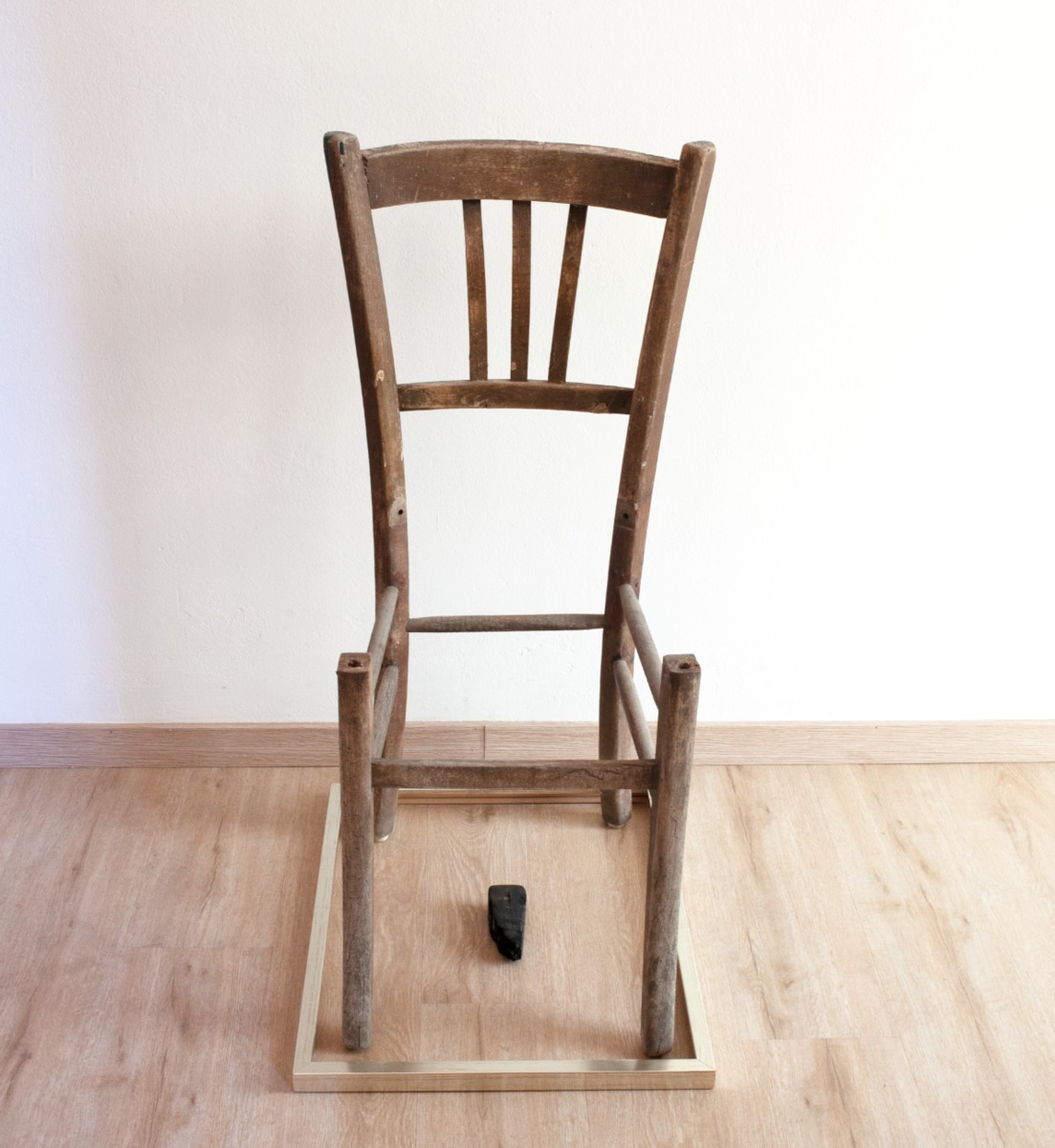 Una vecchia sedia (”quasisedia”) priva della sua seduta aspetta l’intervento umano (aggiunta della seduta) per riguadagnare la sua identificazione funzionale. Rimane nell’attesa una quasi-sedia. Sottile omaggio concettuale a Picasso, primo ad usare pubblicamente il termine objet trouvé riferendosi alla sua opera Still Life with Chair Caning.