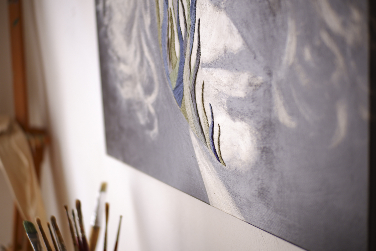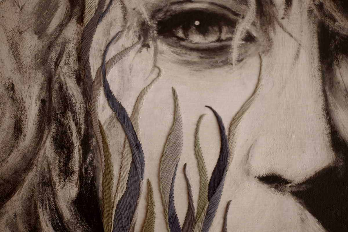 ”TraMe” Particolare del ricamo in rilievo sul dipinto