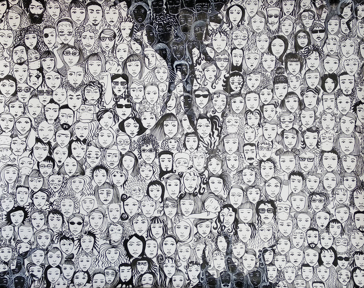 Todos vivimos en el mismo mundo, pero el mundo que conocemos se esta rompiendo y sin embargo no hacemos nada para cambiar esto. La imagen ”2020” es una crítica de como yo veo a la humanidad frente a los problemas actuales que sufrimos de salud y medio ambiente. Caras inertes que simplemente observan lo que pasa y dejan que ocurra sin buscar de raíz las causas que nos llevaron a tener este problema.