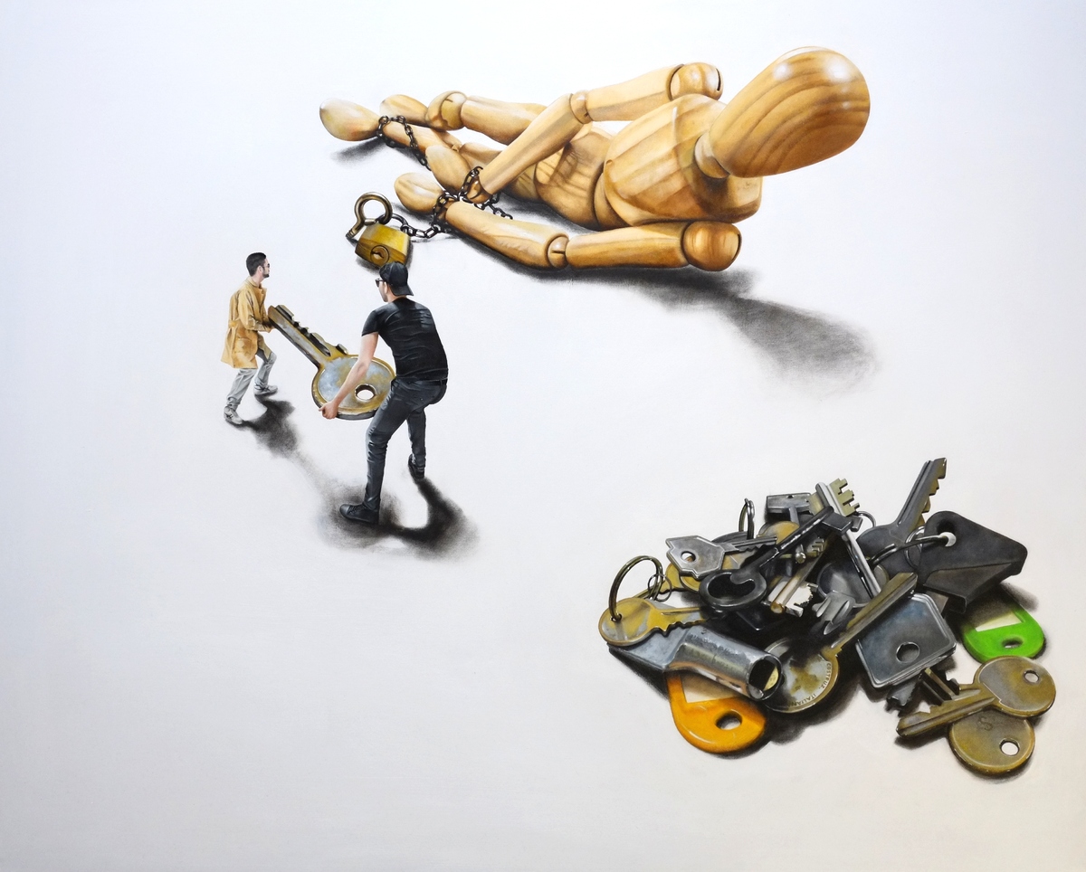FREEDOM IS A CHOICE olio, acrilico e carboncino, tela 80x100
