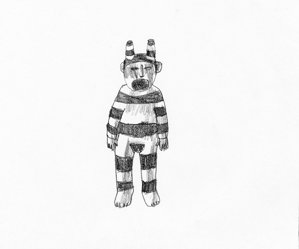 Lo spirito tuffatore nasce da un mio interesse per le forme. Rovistando su internet ricerco immagini che mi parlino, e senza volermi soffermare troppo sul loro significato, costruisco io una narrazione attorno ad esse. In questo caso la riflessione sull’essenza di questo personaggio è virata sul valore dell’atto creativo in sé.
