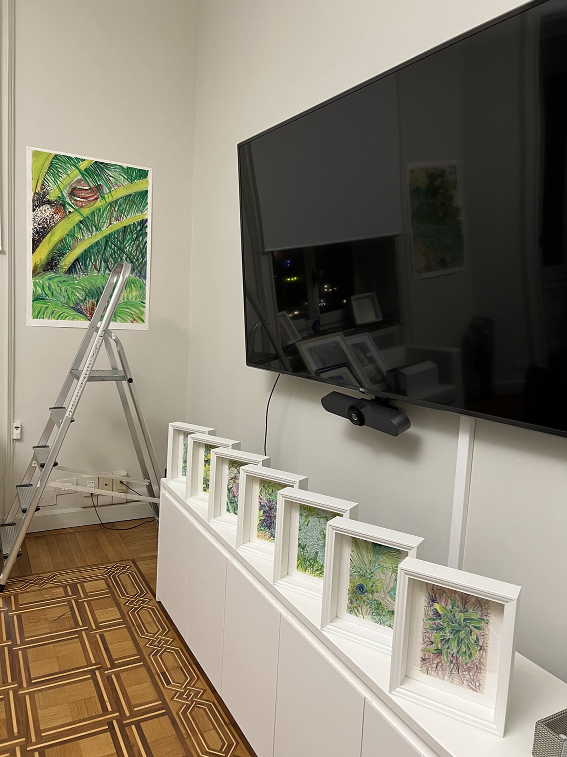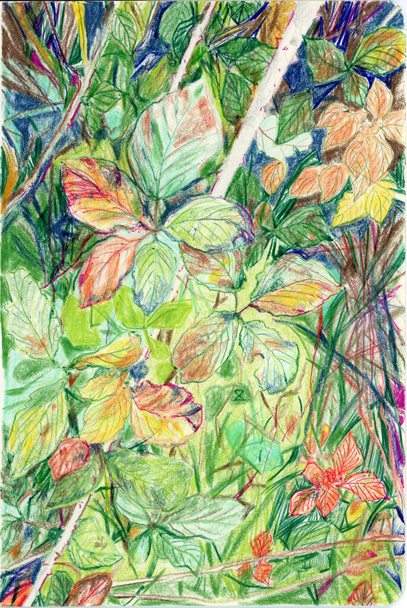 ”Un’altra mattonella della natura apprezzata e trasformata durante il lockdown, nella campagna tra Pisa e Livorno. In questa ’pratonella’ si riconoscono i rovi, piante che sono fastidiose e infestanti ma che sono l’ennesima dimostrazione dell’ambivalenza della vita. Dai rovi nascono i frutti neri e rossi delle more che sono buoni e rinfrescanti, da cogliere al momento giusto perché basta essere un po’ in ritardo e muffe e ragnatele li rovi-nano.”