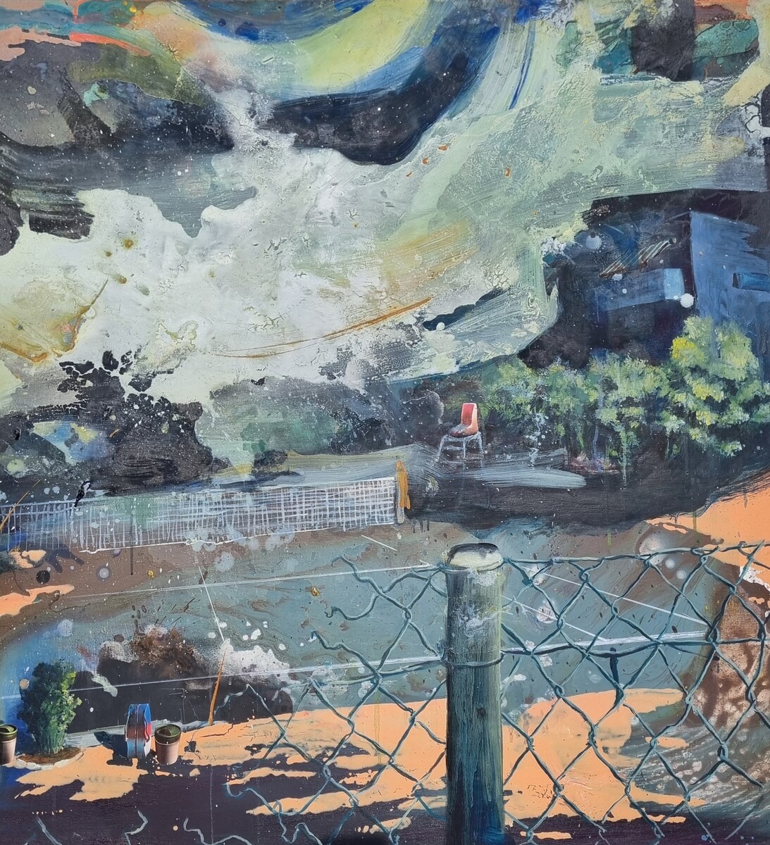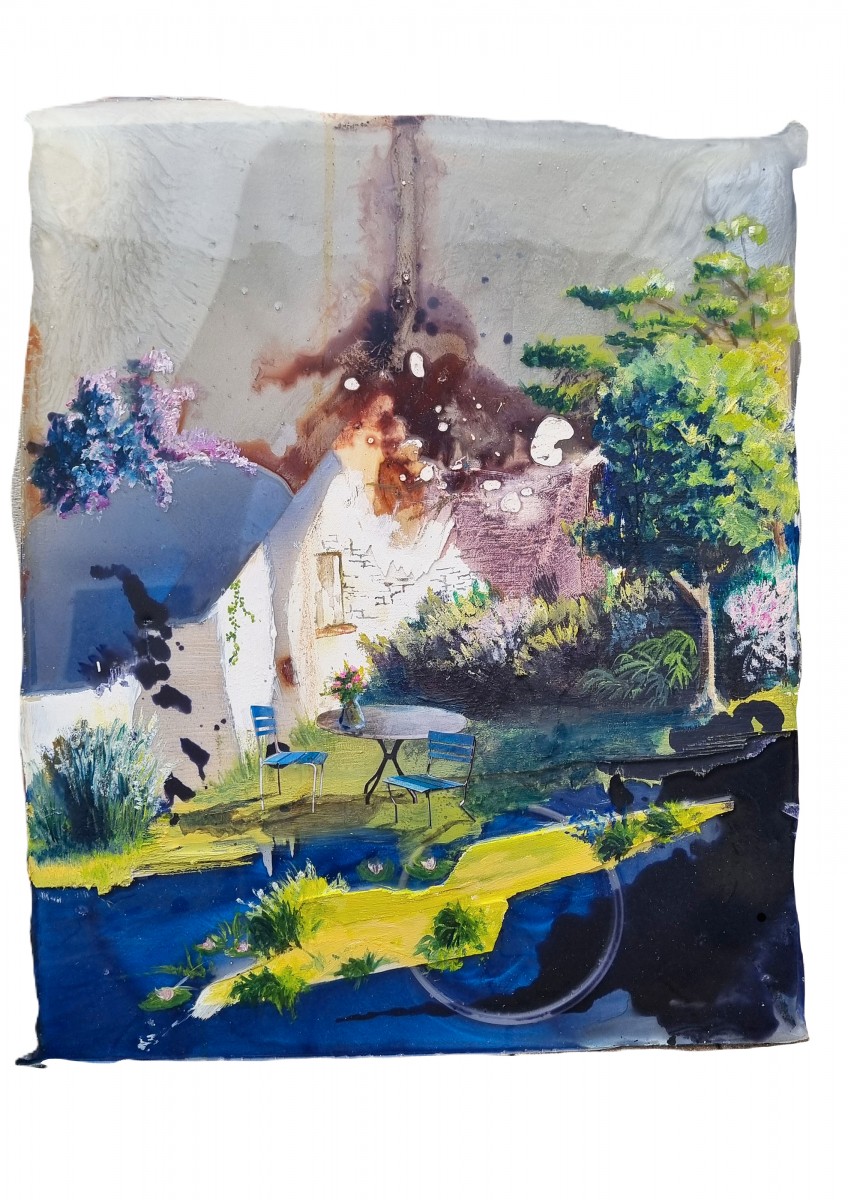 mista: acrilico, olio, resina epossidica, collage, lastra di resina epossidica con frammenti lignei