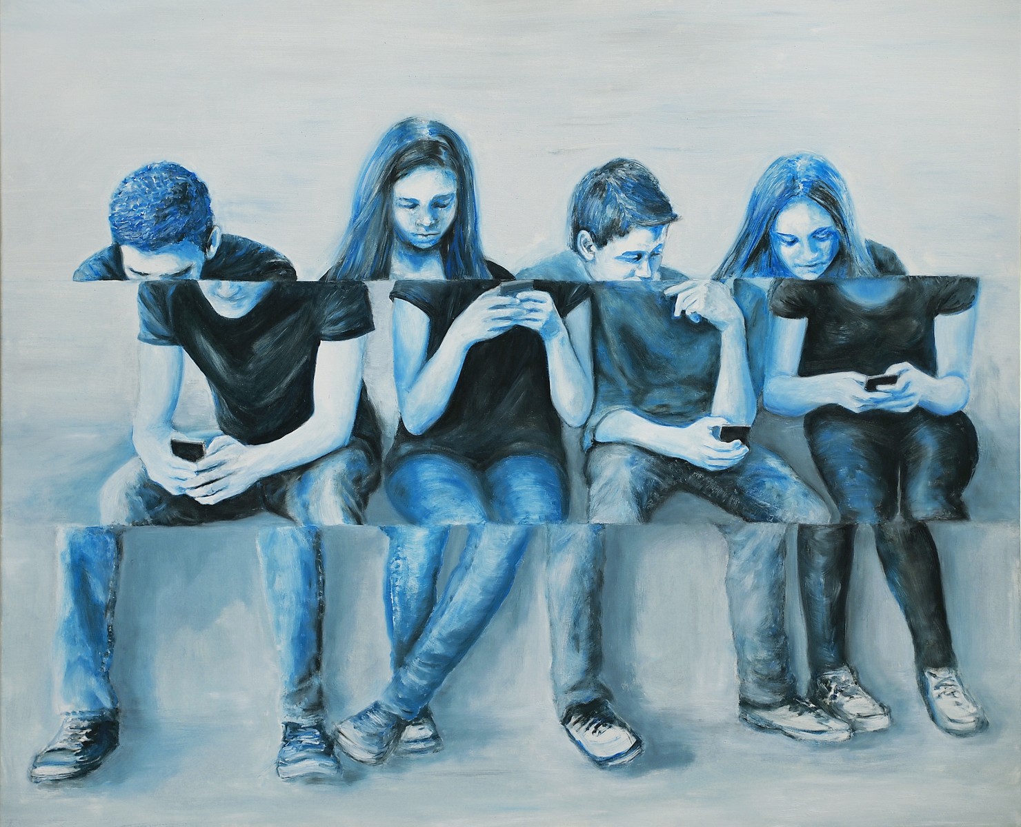 Isolati in mondo virtuali tecnica mista, tela 100 x 120 cm
