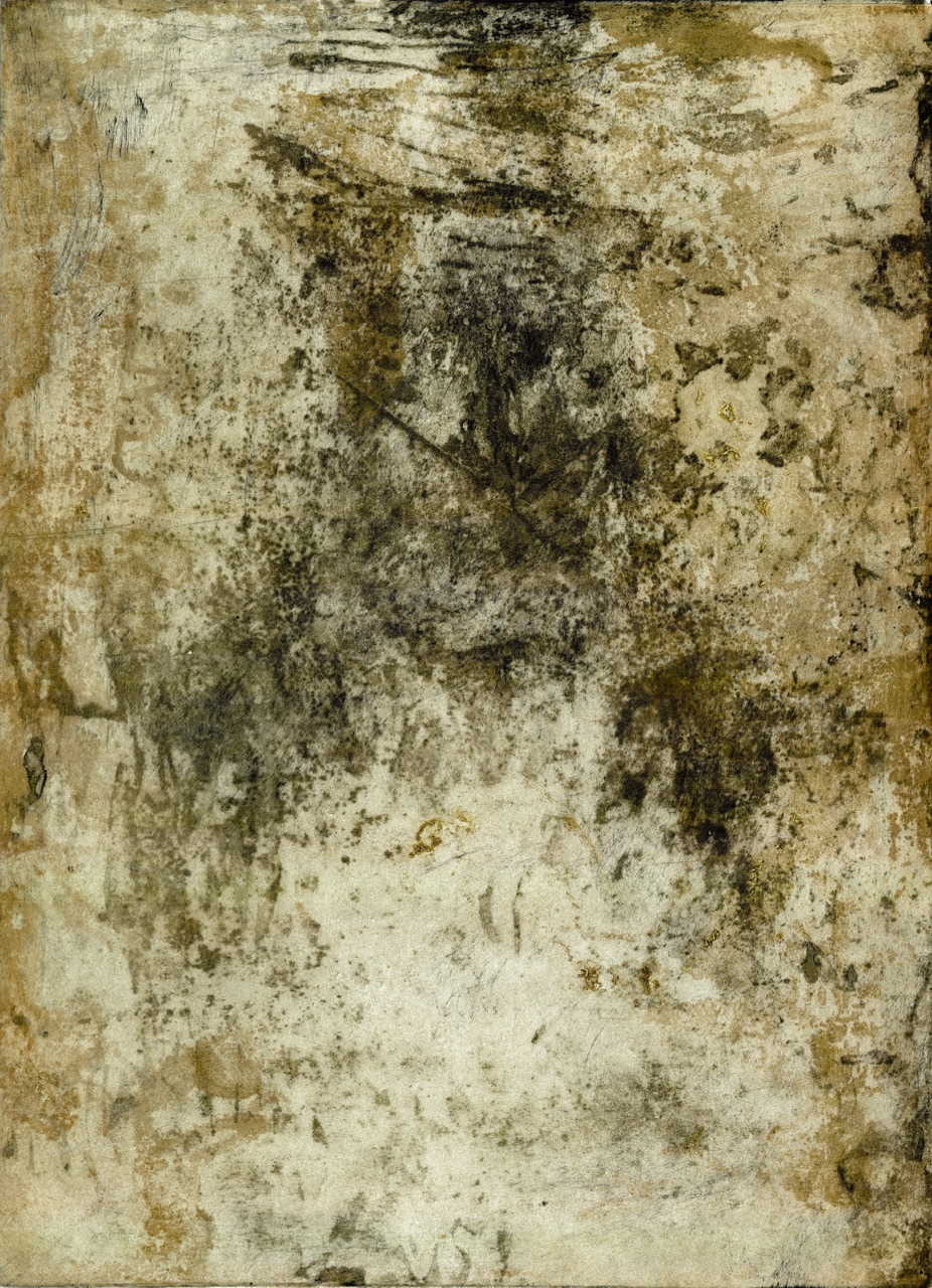 Nella serie “esumazioni” le matrici di ferro sono seppellite in un processo rituale. Esse diventano strumento per la formazione di ossidazioni, portate alla luce in fase di stampa. La serie è in corso d’opera, dopo un primo stadio di seppellimento, le matrici sono state inumate nuovamente. Le successive stampe indagheranno il rapporto, o assenza di tale, con le ossidazioni precedenti.