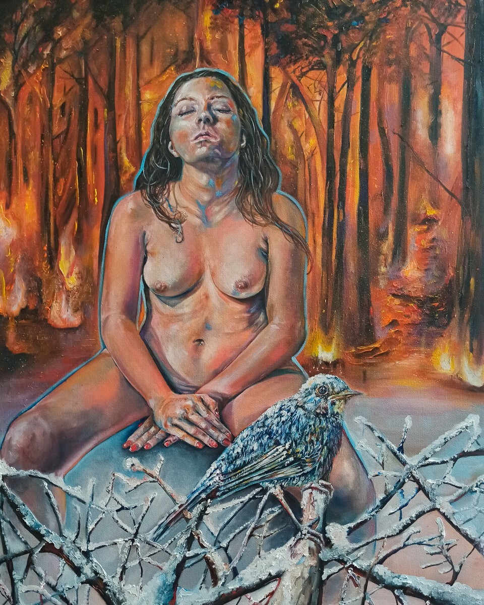 L’opera ha un intento introspettivo, è una sintesi della lotta dei desideri contro le esigenze del vivere quotidiano. L’ anima sta lì, bloccata e vulnerabile fra il fuoco delle passioni che brucia dentro, e affligge, e la vita reale sospesa in un ghiaccio che congela ogni speranza. E allora cerca di ascoltare se stessa e ritrovare il canto dell’usignolo, che, paralizzato dal freddo, non riesce più a cantare.