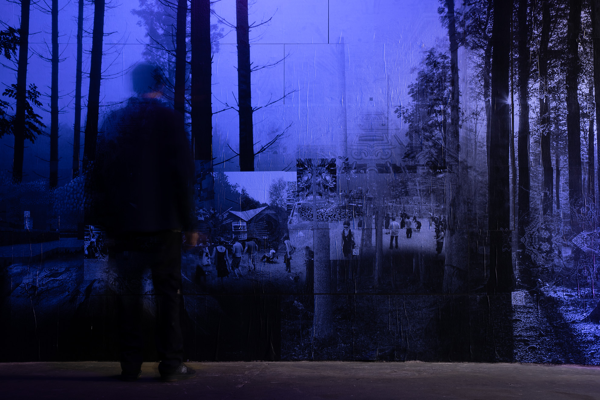 installazione site-specific luce wood, stampa inkjet su carta riciclata a3, acquaforte e acquatinta su rosaspina, materiale organico, parete