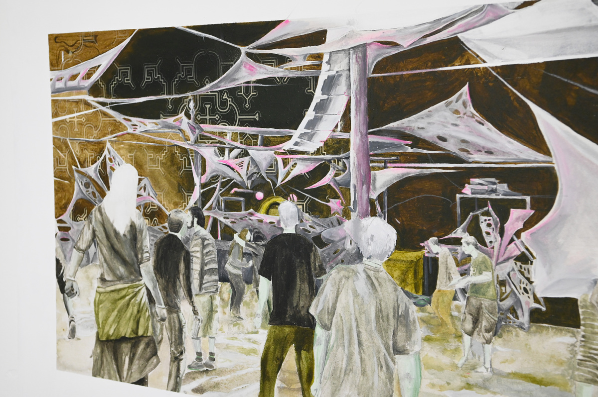 acrilico e vernice spray su tela, tela