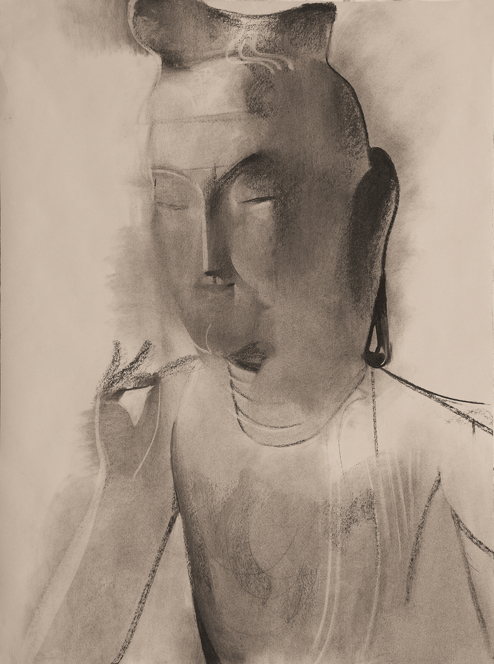 l’opera è ispirata a una statua lignea del Buddha, proveniente dalla Corea.