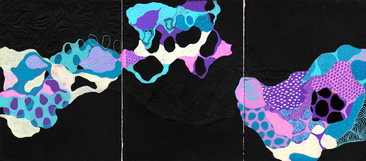 Questo lavoro componibile fa parte di un progetto più ampio a cui lavoro da un paio di anni con l’obiettivo di interrogarmi su quanto permane in noi al termine di un’esperienza. In particolare mi interessa l’agire nello spazio e nel tempo, le due coordinate nelle quali si svolge la vita. Ciò che rimane, che si sedimenta in noi, è ciò che costruisce la nostra identità come individui. In un società che si è abituata a vivere un eterno presente, dove tutto risulta saturo e perciò nulla sembra avere il potere di restare, il mio lavoro marcia in direzione opposta, alla ricerca di ciò che resta, appunto, che si imprime. Questo lavoro è realizzato con disegno acrilico e stampe a rilievo da matrici di plexiglas e linoleum incise a bulino e sgorbia.