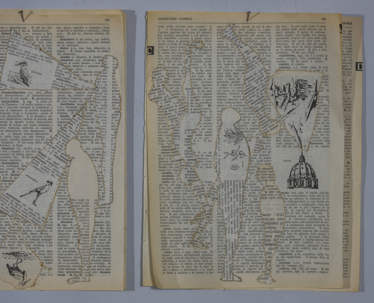 Ogni essere umano può quindi cambiare il mondo, definirne i confini dettati dalla non conoscenza della lingua, ma anche cambiarne la storia. Ogni pagina ricamata ha una storia personale, ogni pagina é un giorno della nostra vita, in queste, le piccole figure ricamate si muovono liberamente, portando con loro nuove esperienze, costruiscono nuove definizioni, stravolgono il concetto legato alle cose, mischiano il mondo, sono uccelli ma anche fiori, si fanno verbo e possono modificare quello che dovrebbe accadere, organizzano un messaggio per l’umanità.