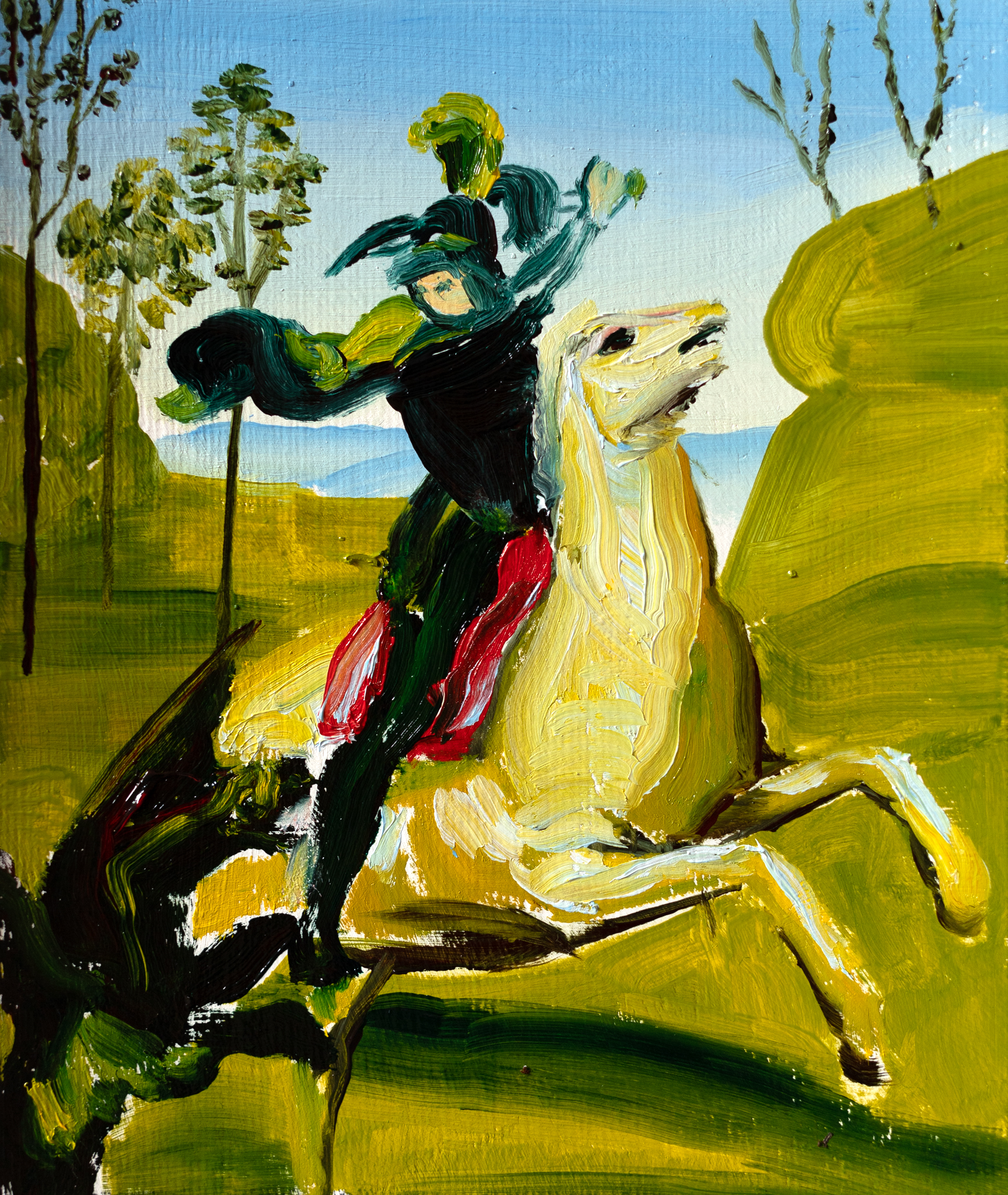 ”Meu cavalo só falava inglês” è stato concepito a partire da una serie di studi su snapshot di servizi di giornale legati all’episodio dell’assalto al Congresso Nazionale del Brasile nel 2023. In varie opere ho elaborato queste immagini, impressionato dall’esito di populismo e fakenews sulla popolazione, rattristato per il mio paese natale. La ripetizione delle dinamiche avvenute negli Stati Uniti nel 2021 mi ha convinto a intraprendere questo tema di crisi della democrazia occidentale.