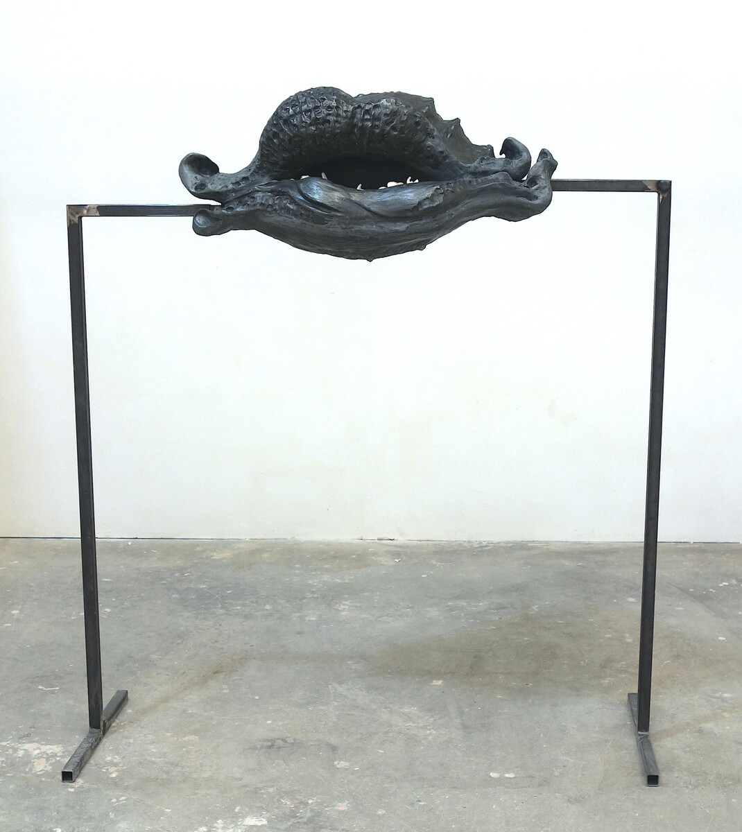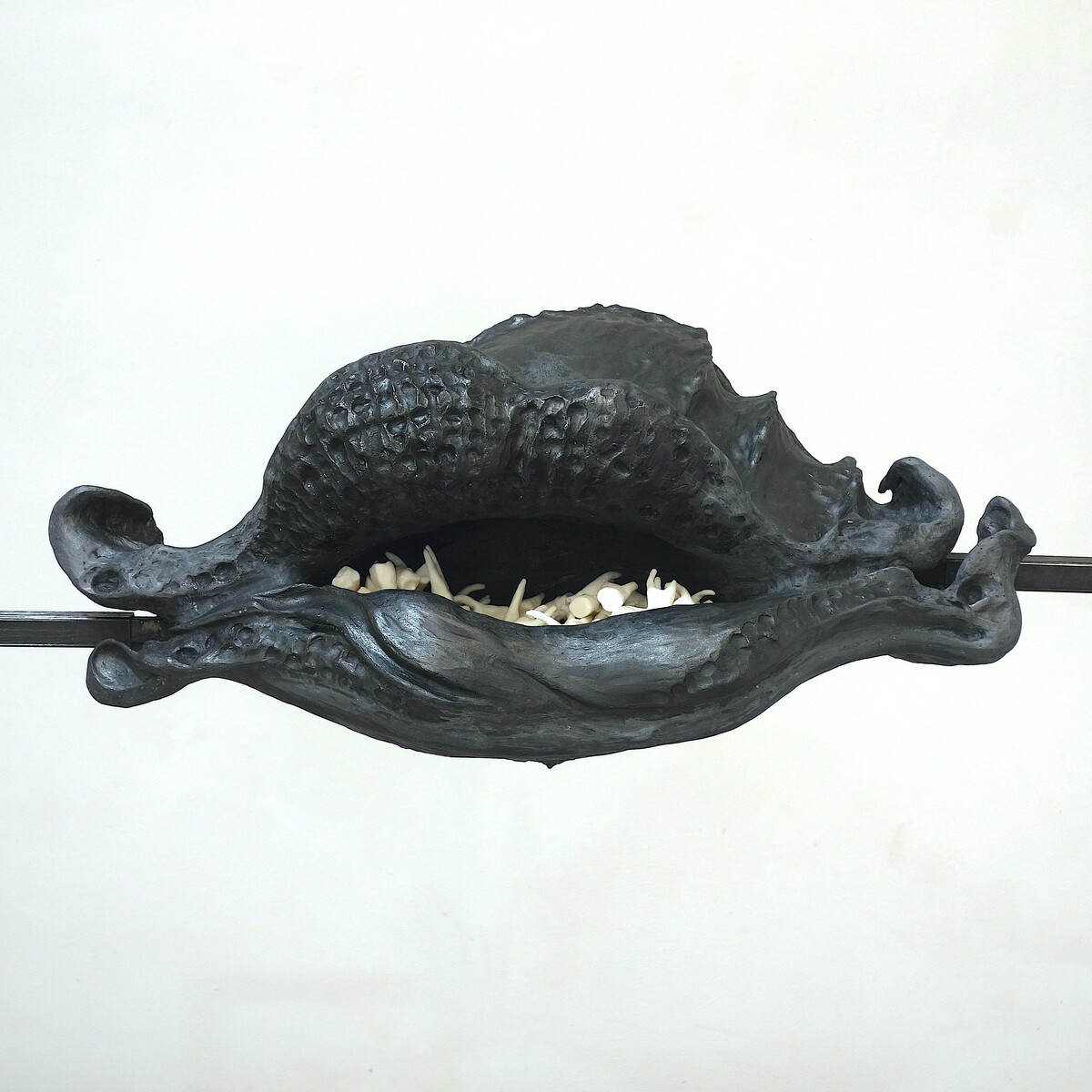 forma persa in gesso, taglio e saldatura del ferro, forma finale in resina acrilica e grafite. denti in resina fatti con stampo in gomma siliconica, resina acrilica, grafite, ferro