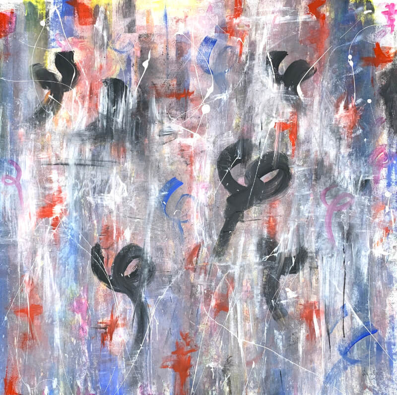 Il dipinto che propongo qui, intitolato proprio “Pensavo fosse una dipendenza, invece era spiritualità”, segna questa presa di coscienza a livello personale, e offre anche uno spunto di riflessione che mi sento di condividere: