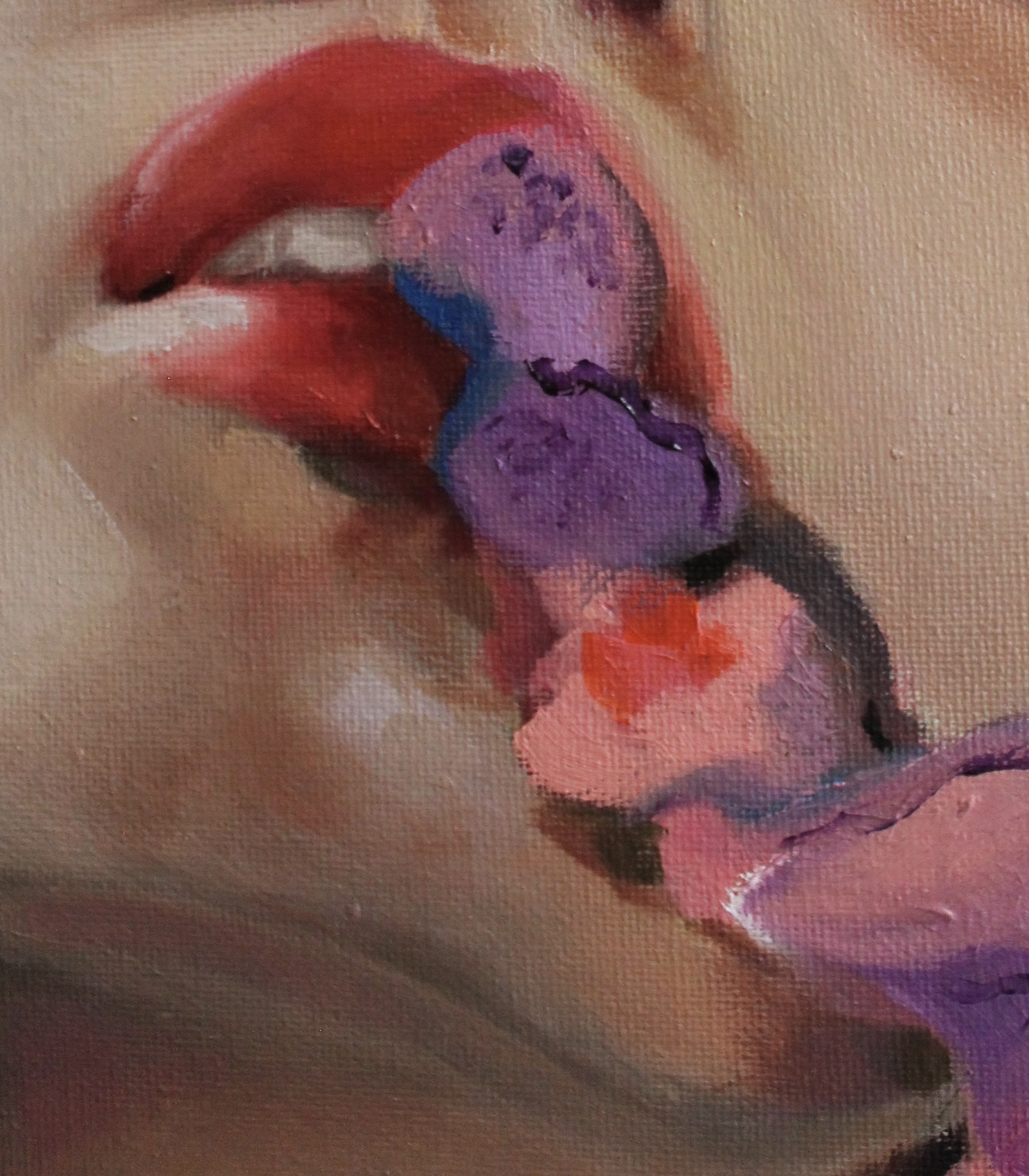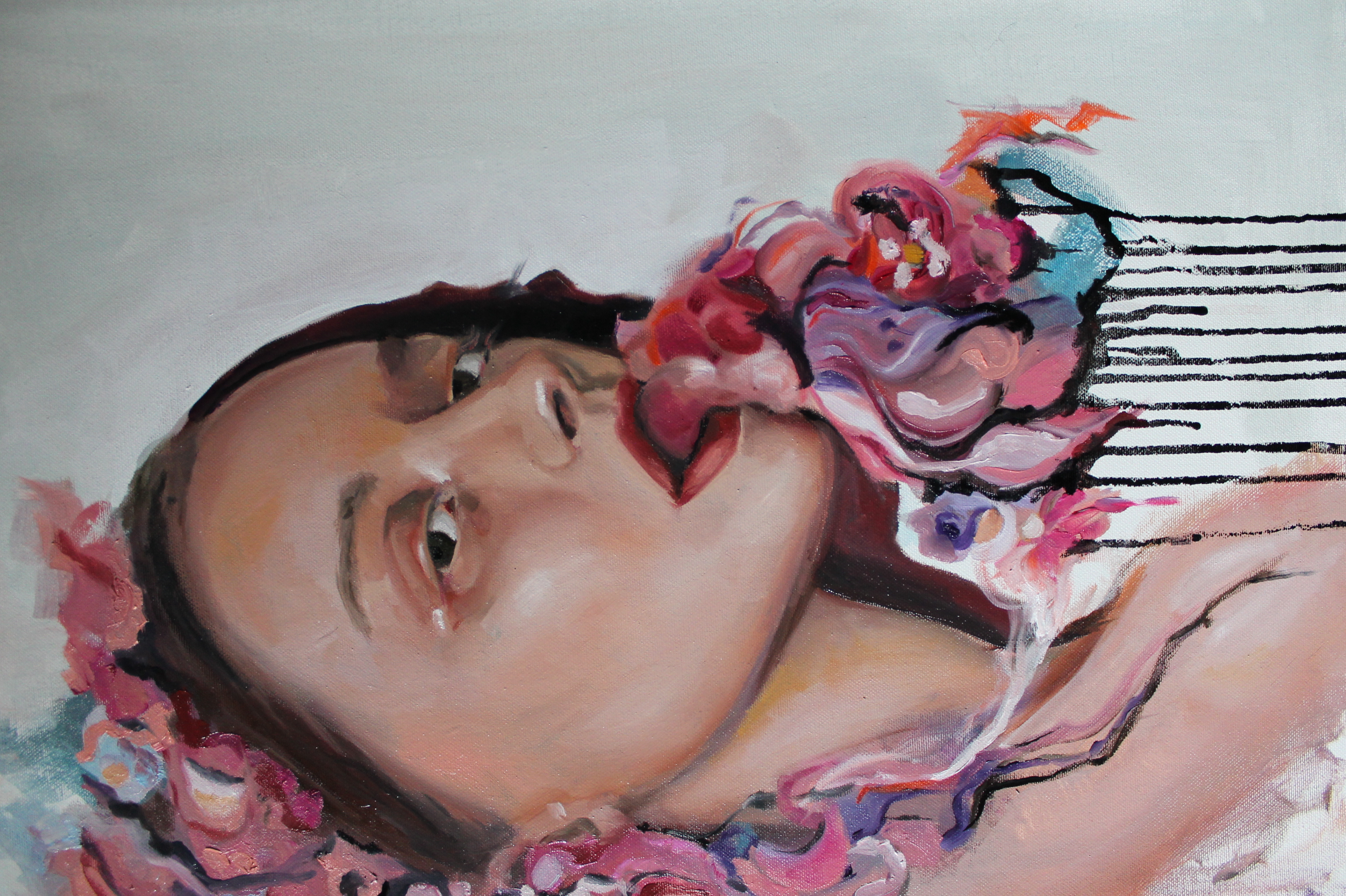 Dipingo principalmente ad olio, nella mia tecnica convivono pennellate dure, dettagli realistici e spazi non finiti.