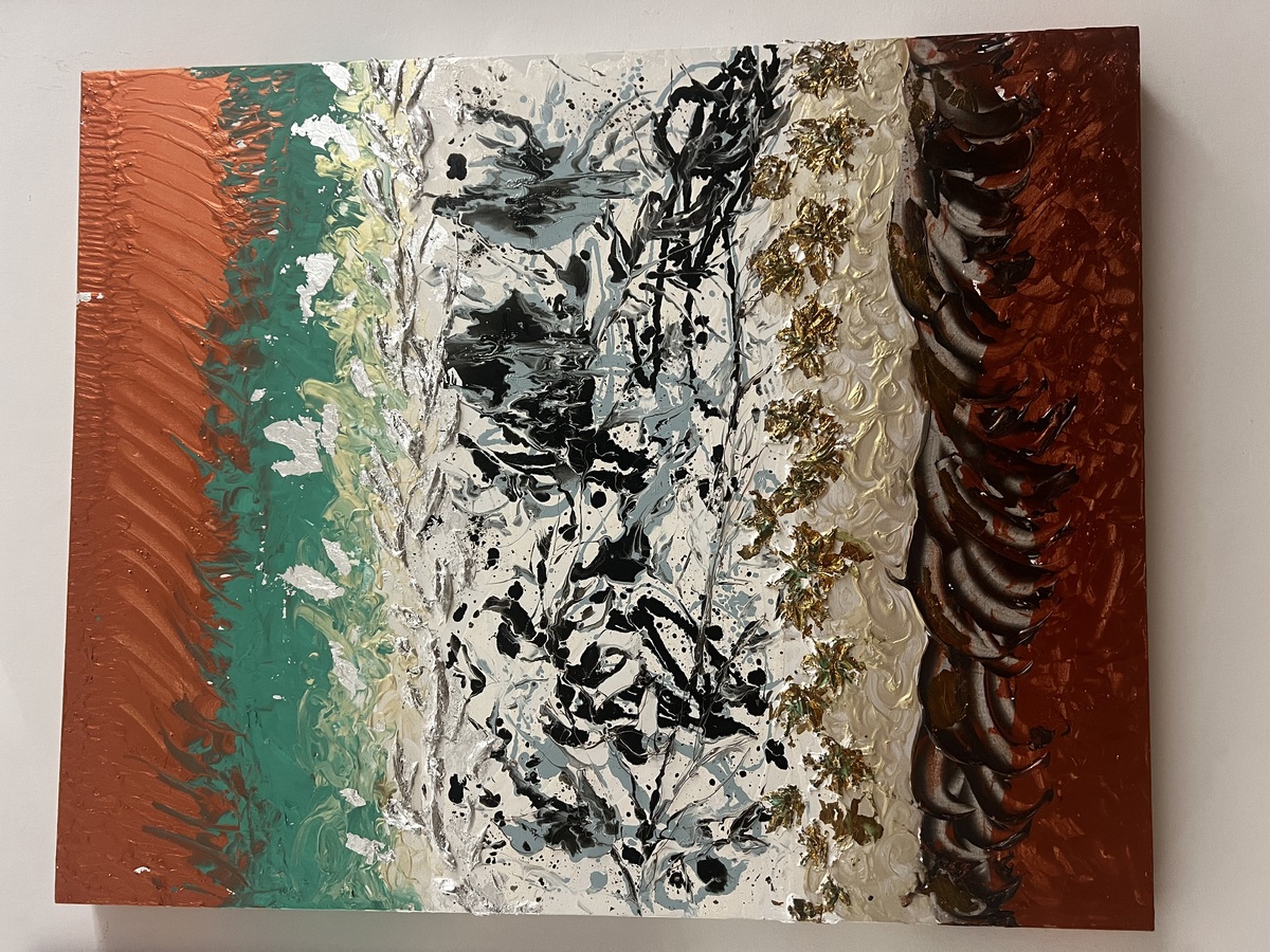 Un cammino insieme smalto, stucco, foglia d’oro e argento, lega di rame, tel 70x100