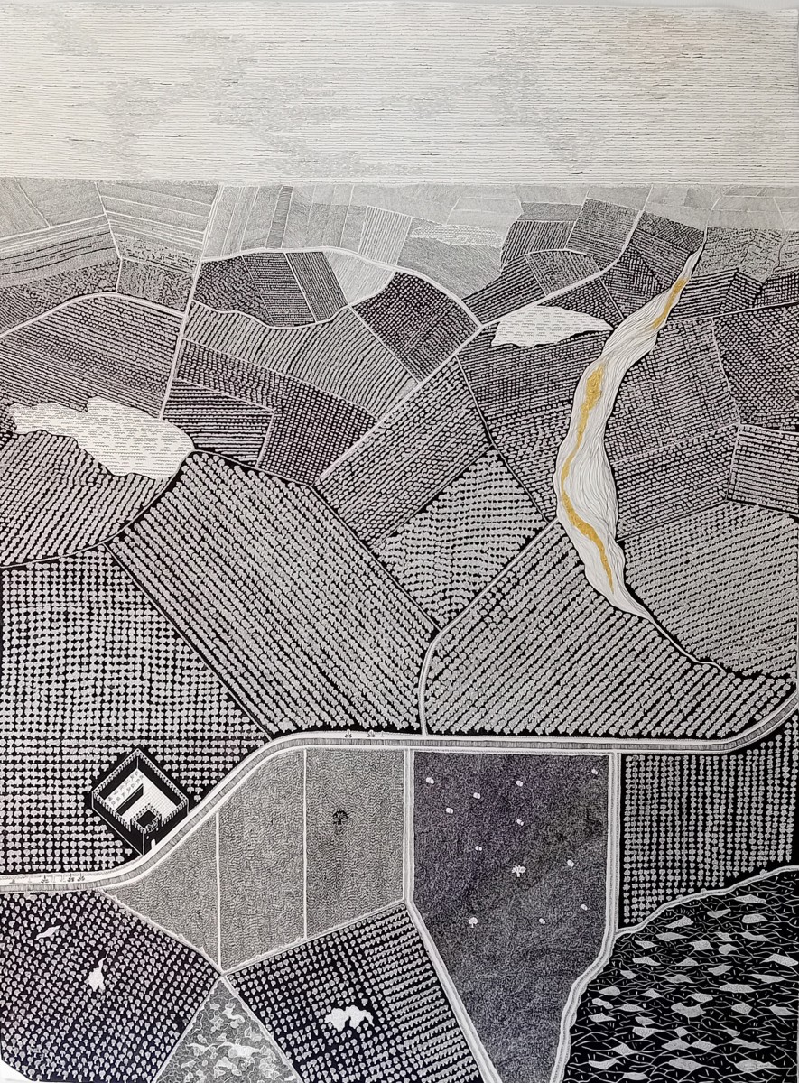 Biografia: Gilda Convertino è un’artista visiva e architetta del paesaggio. La sua pratica artistica abbraccia l’architettura del paesaggio, l’urbanistica e l’architettura dei giardini, con un focus sull’esplorazione della relazione tra spazio antropico e ambiente naturale. Il suo lavoro nella rappresentazione del paesaggio, utilizzando motivi a inchiostro nero e elementi in foglia d’oro, è collegato all’idea di osservare, ricercare e tradurre elementi tematici del paesaggio e del panorama urbano in un’immagine specifica e visivamente sensibile. La sua attività di disegno paesaggistico offre interpretazioni dei luoghi con uno stile centrato sui concetti di materiale, prospettiva e geometria. Esplora lo spazio attraverso i suoi elementi individuali e la loro materialità. Elementi distintivi e caratteristici sono rappresentati attraverso pattern, creando un habitat in cui tutto è bilanciato. Il suo obiettivo è creare opere significative, capaci di coinvolgere l’osservatore. Basandosi su ricordi o visite ai luoghi, e miscelandone gli elementi, crea immagini di luoghi specifici in città e territori per narrare i loro cambiamenti, evoluzioni, fragilità e punti di forza. Ogni opera rappresenta una storia del paesaggio in grado di raccontare l’identità di un luogo e ampliare la comprensione dell’osservatore.