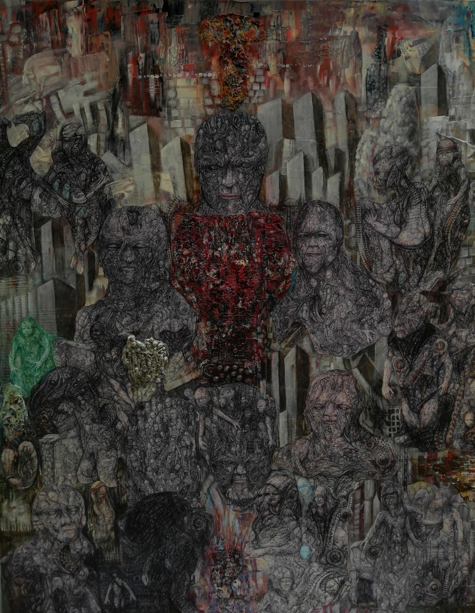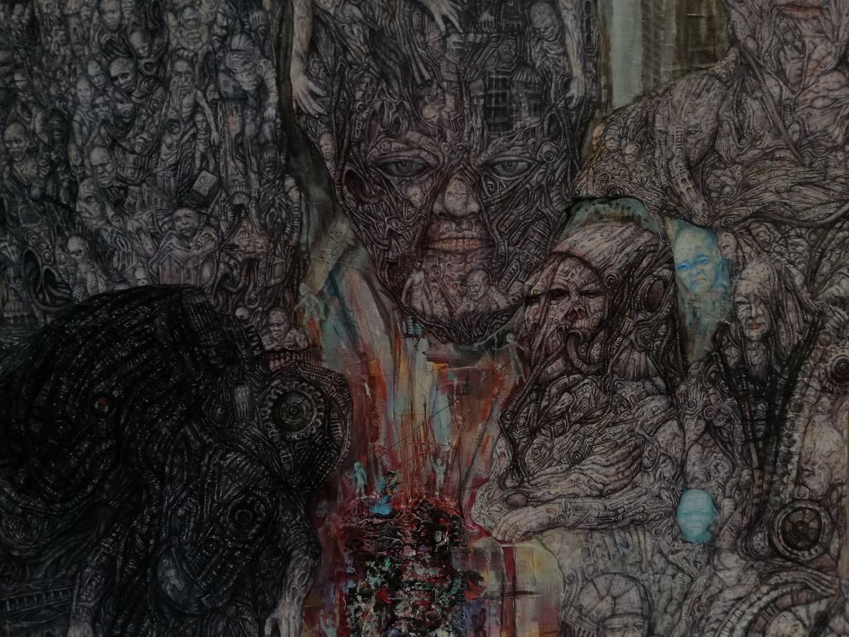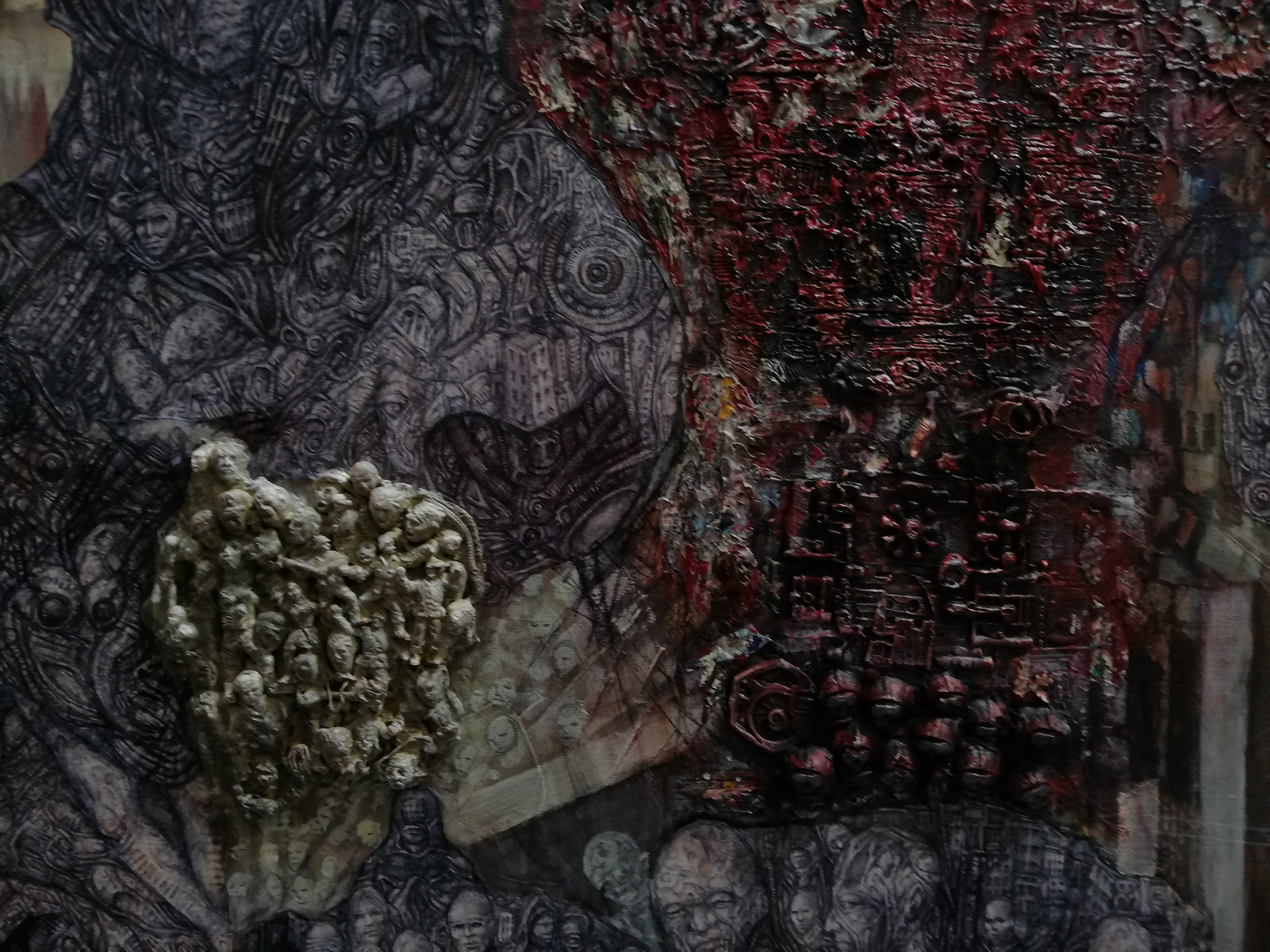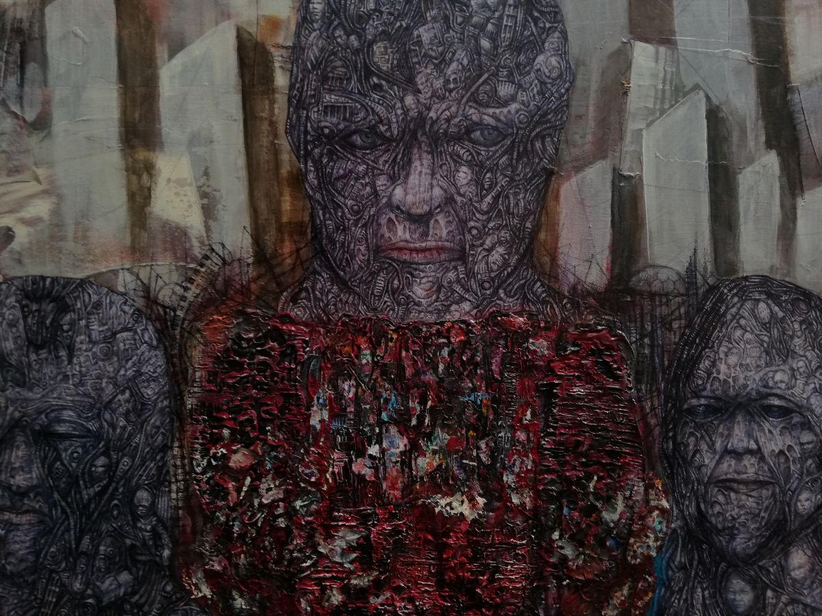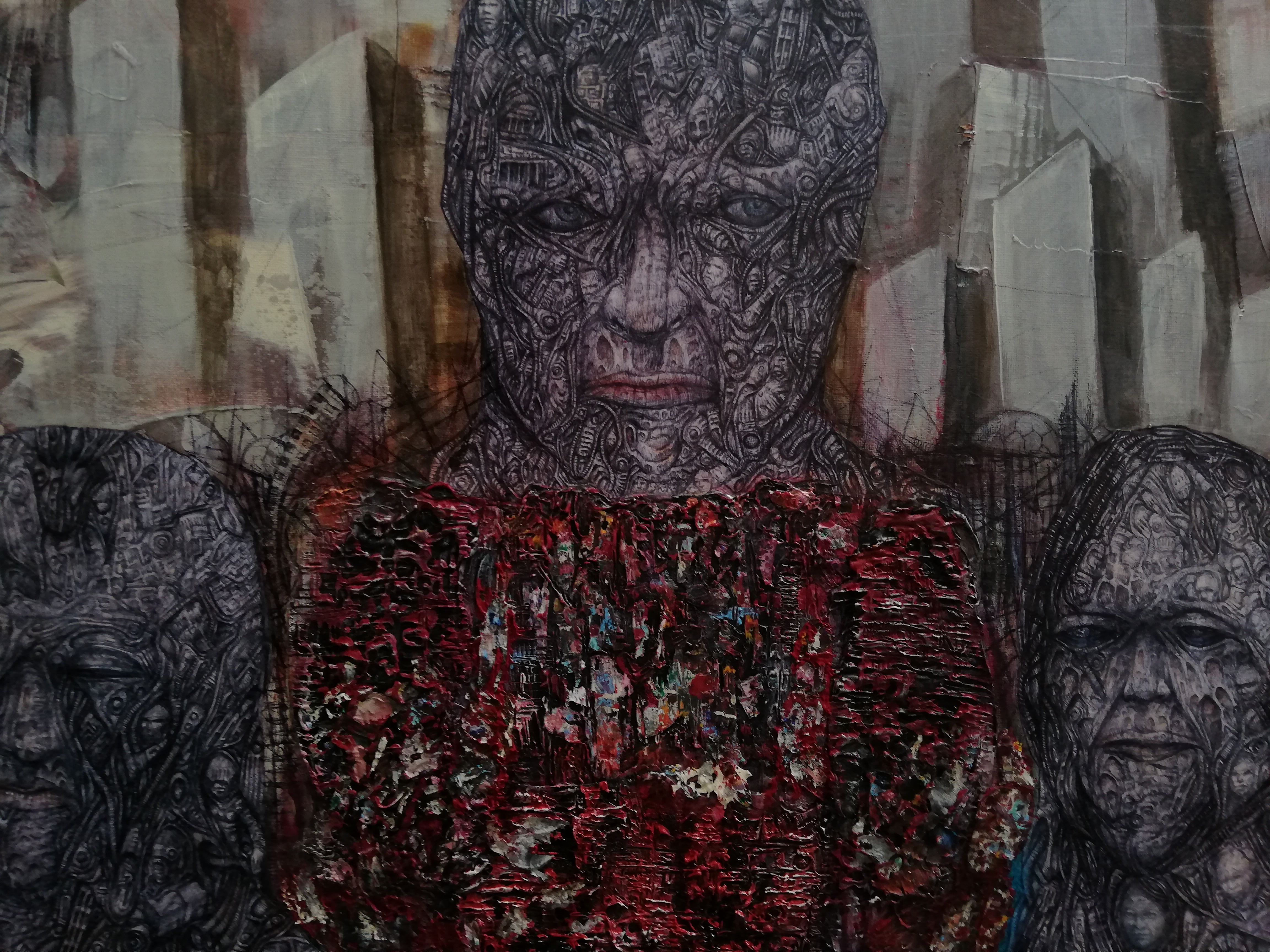 Dagli anni 2000 cambia la prospettiva del suo lavoro creando dipinti. Le sue opere sono influenzate dal mix di fumetti e film fantasy degli anni Ottanta e Novanta (Star Wars, Alien, Blade runner) e la passione per l’arte informale (alcuni pittori che ammira con passione sono - Emilio Scanavino - Alberto Burri - Pinot Gallizio). I suoi lavori sono una commistione tra il figurativo surreale con rimandi alle sue passioni per la fantascienza e alla pittura informale. Tale pittura è una concezione ribelle dell’arte a cui sente di essere vicino. L’informale rifiuta la forma per intervenire direttamente nella materia con un segno espressivo ed entra in gioco perciò la materia. Questo è il concetto fondamentale dell’arte Informale. Al tempo stesso però il figurativo surreale che utilizza, è lo sfogo della sua parte più cosciente che esce dai suoi quadri per urlare al mondo. Da questa unione, i dipinti vengono creati con tecniche miste varie caratterizzate da pennellate e strati sovrapposti, utilizzando vari materiali come colori ad olio, acrilici, matite. Inserti in plastica creati con il Vinavil vengono usati per tessere la superficie dell’immagine e renderla in rilievo e pulsante. A volte piccole sculture di figure emergono dalla tela, animando la composizione. Un’importante parte del quadro è composto da una serie di collage di disegni stratificati effettuati con penne ad inchiostro, creature e agglomerati di una matrice fantascientifica, assemblati per ricreare mondi onirici con segni e metodi nel caos interiore e universale a cui attinge per le sue creazioni.