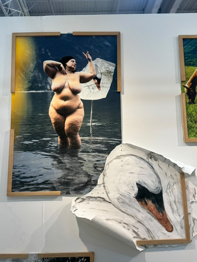 Leda inkjet print on archival paper with a painting attached, 155 125 2