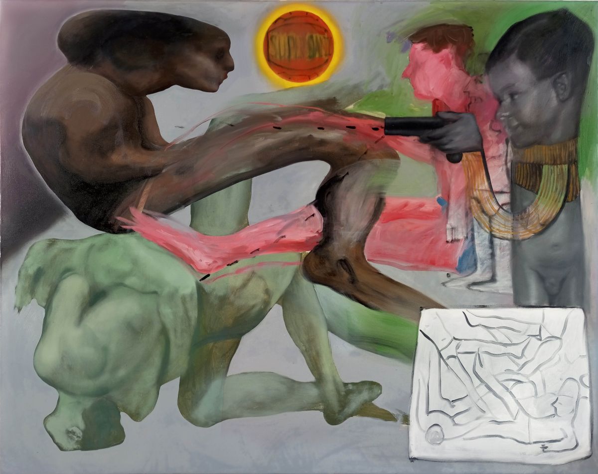 ”Calcetto del litorale (L’hai mai toccato er fero)” è un quadro che intreccia la crudezza delle spiagge laziali con la spettacolarizzazione dello sguardo infantile. Attraverso una composizione che concentra l’attenzione nello spazio delimitato dall’intreccio delle gambe durante un’azione calcistica, l’opera mette in luce le dinamiche delle realtà di provincia e la violenza immotivata che possono generare. Una visione sospesa tra gioco e brutalità, filtrata dallo sguardo innocente ma partecipe di un bambino.