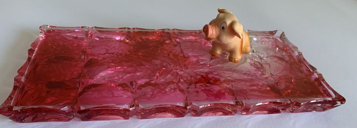 Il porcellino dall’aria innocente, immerso in un bagno rosso che evoca il sangue e la passione, ci riporta alla responsabilità sia dell’industria alimentare, sia di noi consumatori, circa il modo in cui questi animali sono allevati e macellati.