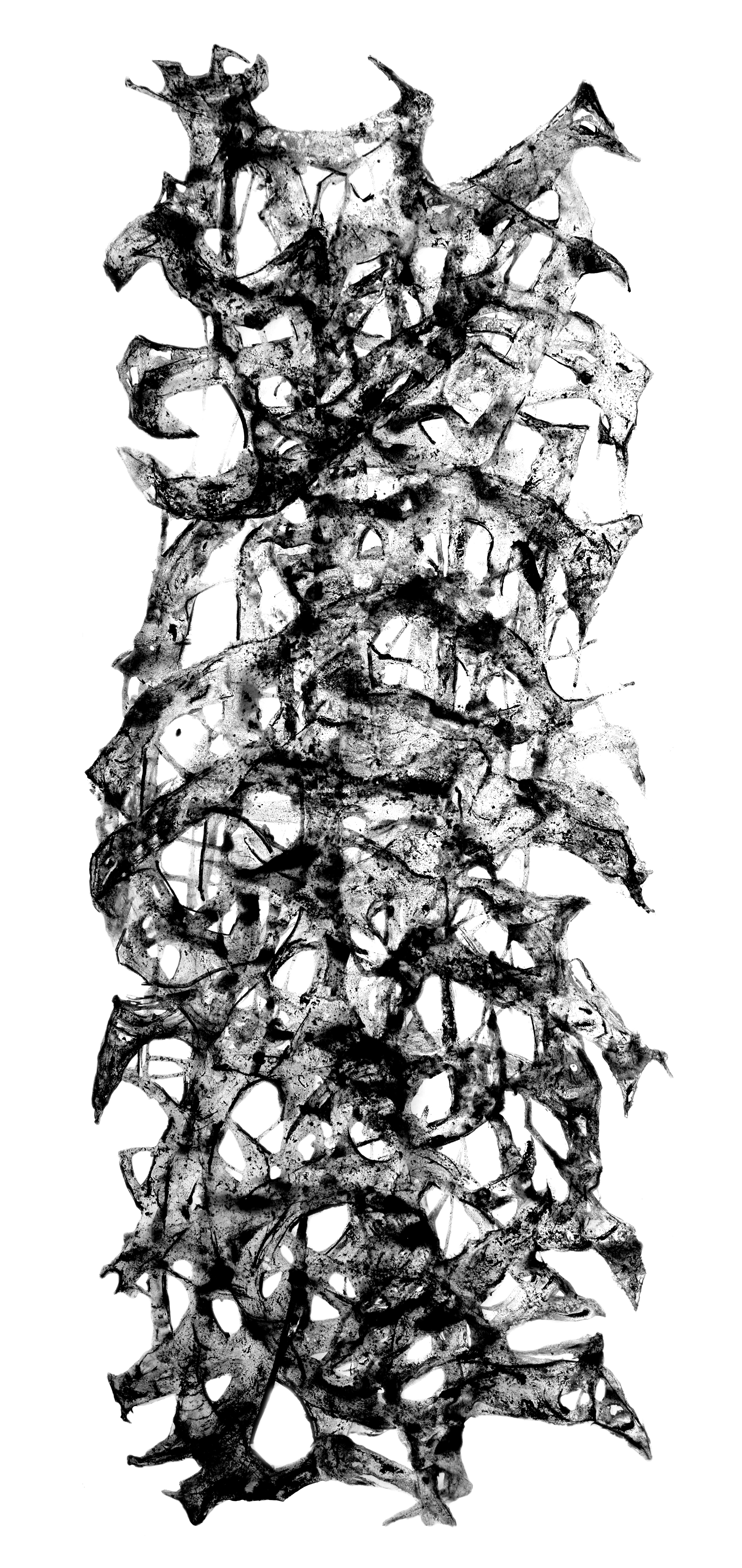Il testo scelto per innescare il processo creativo è il racconto della cacciata di Adamo ed Eva dall’Eden (Genesi III, 21). Alla prima trascrizione in ebraico antico segue una ripetizione progressiva che produce un’opacità (Blur) grafica e visiva: i caratteri e il senso originario si dissolvono.