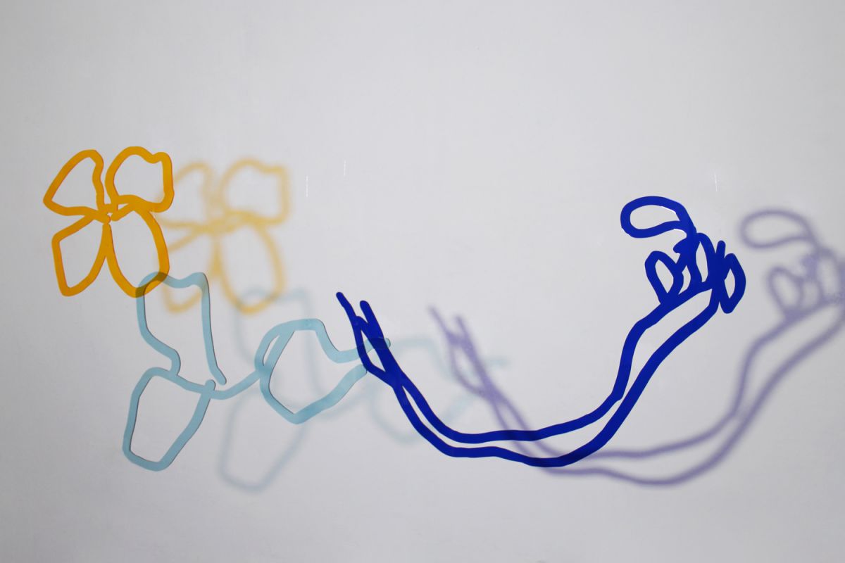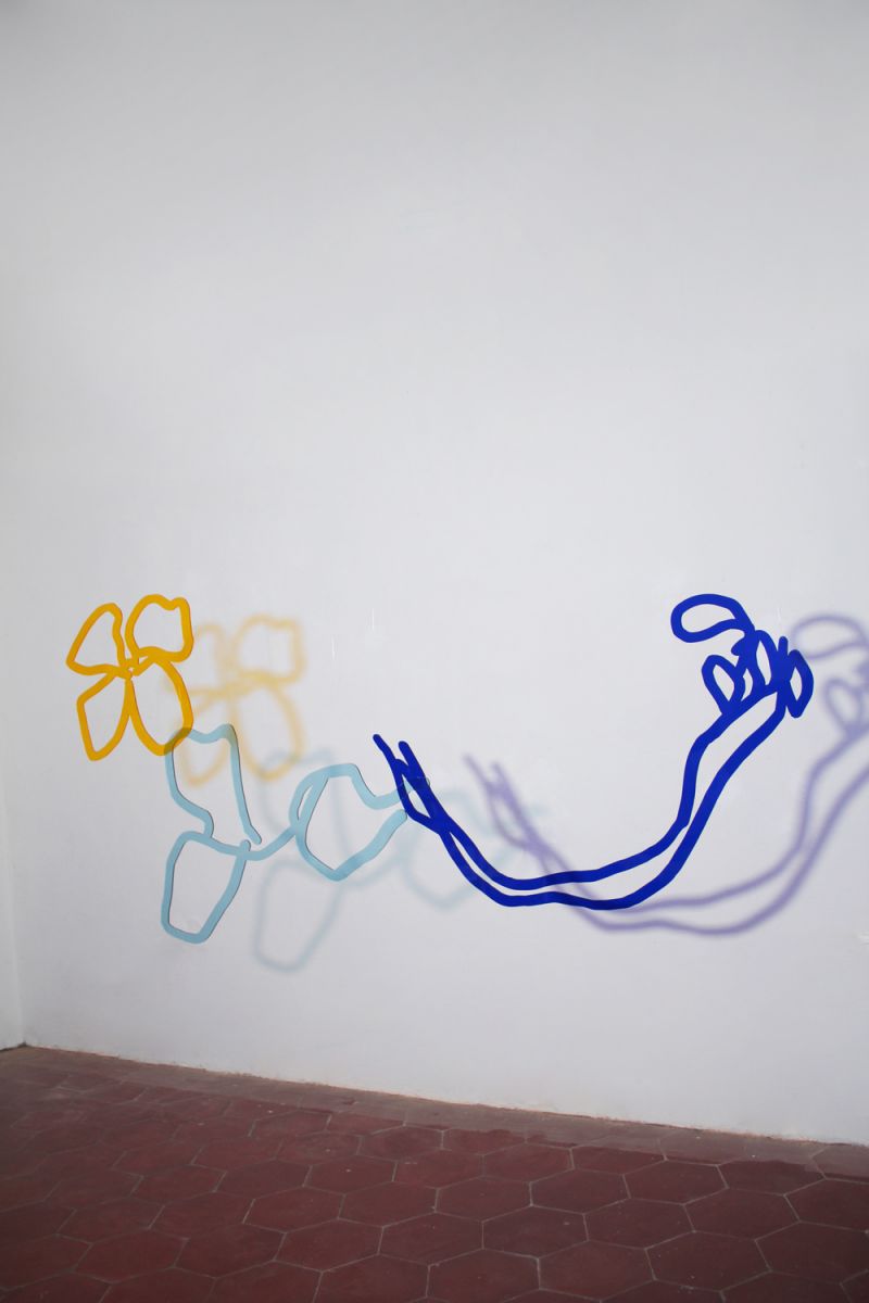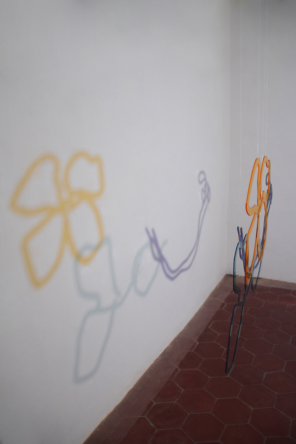 In questo modo, il gesto grafico può elevarsi, non restando solo un segno sulla carta, ma andando ad abitare lo spazio, portando lo spettatore a fruire del “disegno” in modo tridimensionale, potendone, così, osservare le forme e guardandole interagire con l’ambiente che occupa.