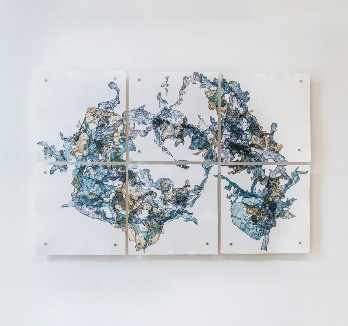 Alia Itineris II fa parte del ciclo di opere ”Mappature sensibili” e racconta il partage di sensazioni, pensieri ed emozioni collegate ai tragitti percorsi in viaggio. Il profilo di ogni matrice incisa e stampata rivela l’aspetto di un tracciato realmente percorso, che porta con sé un cambiamento e una crescita a livello personale ed emotivo.