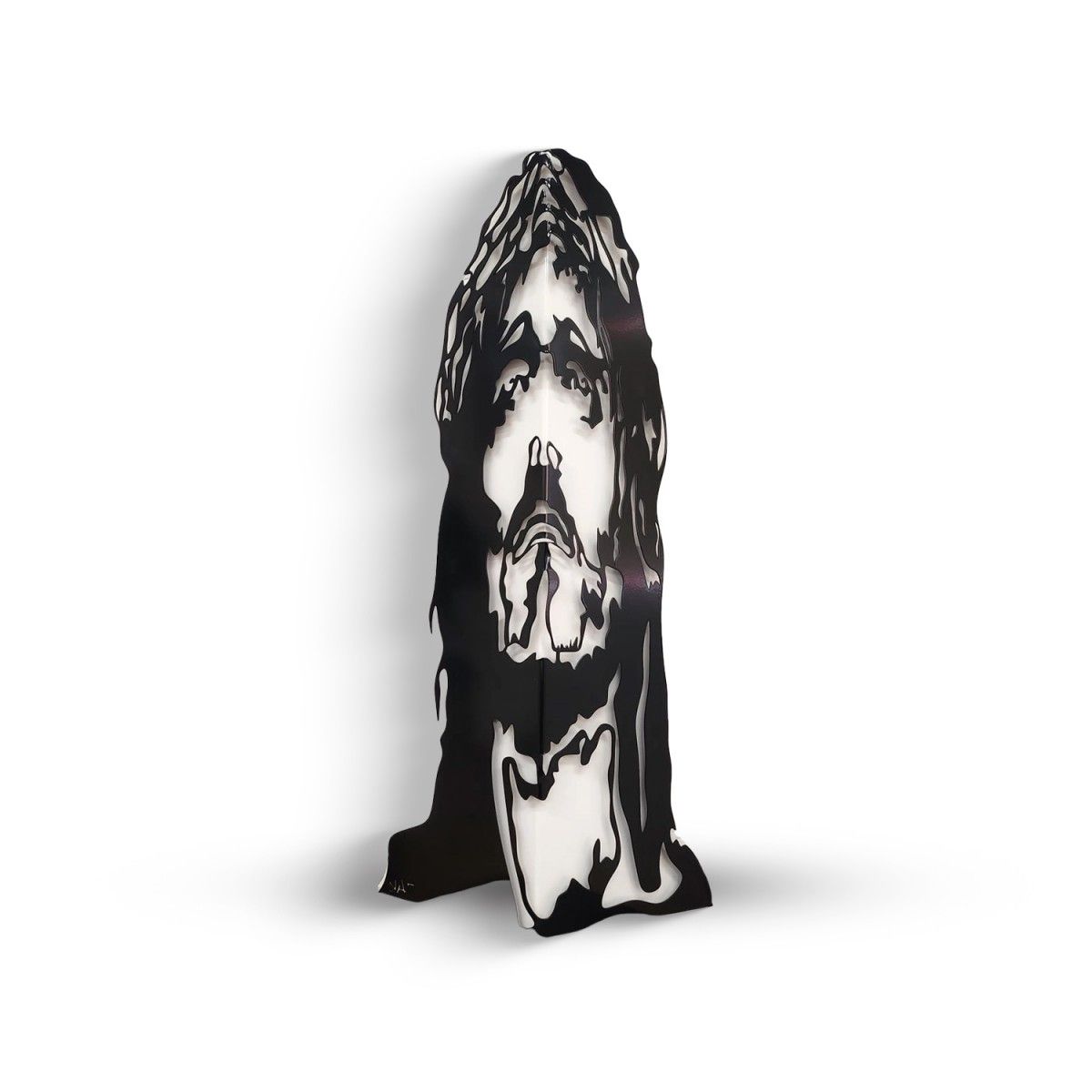 In questo ritratto il metallo si piega, non solo simbolicamente, al fine di rievocare una sensazione di passione, di sacrificio, senza mai prendere le distanze dall’inevitabile destino che lo aspetta.