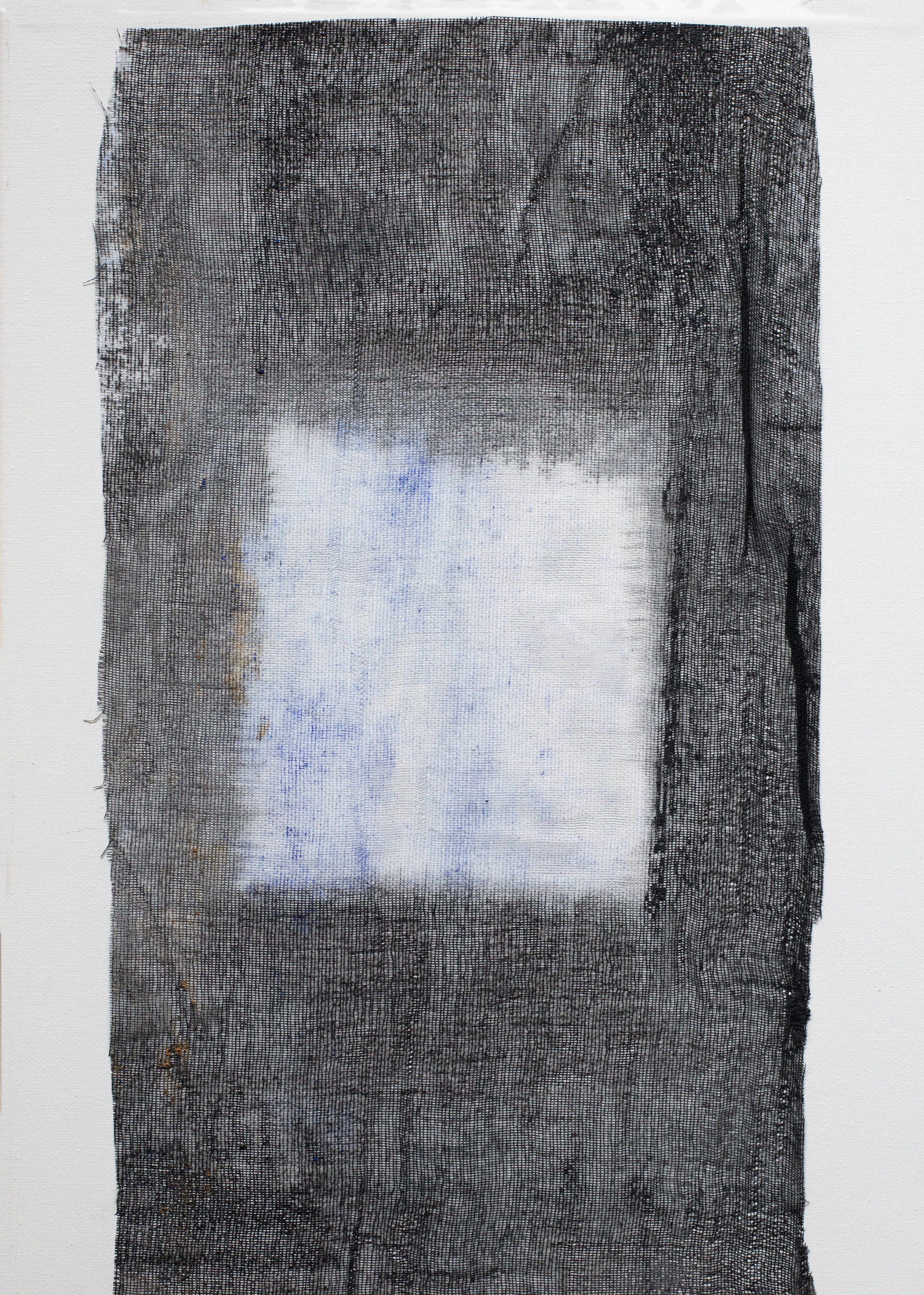 Le quattro opere della serie ”friable” sono dei lavori pittorici che, attraverso l’uso della tarlatana, (benda sottile di cotone lavorata con pigmenti, acrilici e acqua), portano avanti una ricerca artistica e filosofica che vede come punti di indagine i concetti di confine, soglia e mutamento. Poiché il procedere dell’uomo ha sempre un andamento metamorfico, il gesto pittorico indaga gli interstizi rizomatici di quel procedere nei quali visibile ed invisibile, verità ed illusione, realtà e dimensione onirica si fondono e si confondono. Ciò che emerge sono frammenti di un’anatomia interiore che diventa ora paesaggio, ora ricordo, ora inquieta grazia.