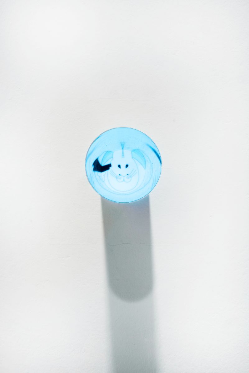 Il dispositivo visivo, composto da un tubo cilindrico e da un display tondo, rimanda al mirino di un fucile, dove, come nel mito di Artemide, lo sguardo avvista la selvaggina e la uccide. In questo caso, però, lo sguardo ne è testimone: il coniglietto decide di porre fine alla sua vita ribellandosi e riprendendo potere su uno stato di instabilità. Il suicidio, quindi, diventa un modo poco convenzionale di ribellione alla rassegnazione cinica da un lato e all’ottimismo ingenuo dall’altro. Per citare il sottotitolo del libro di Andy Riley, il coniglio vuole “semplicemente farla finita”.