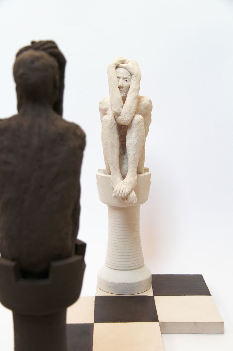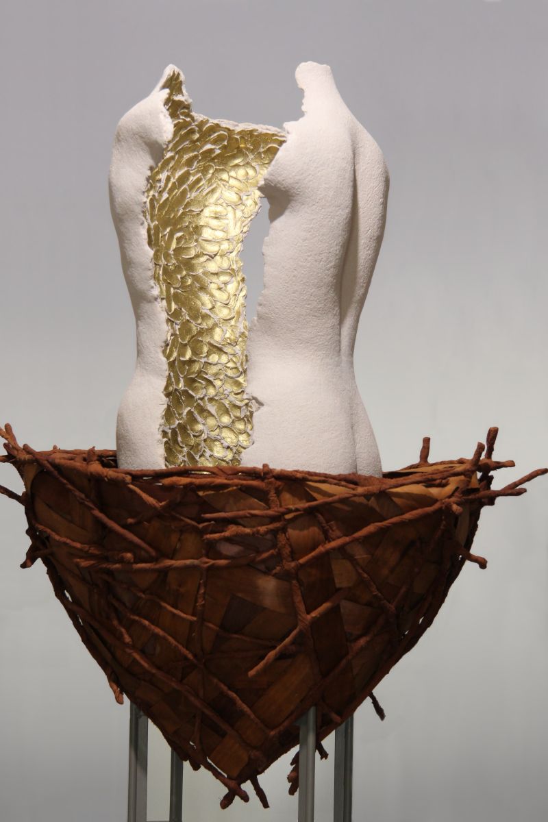 scultura a tutto tondo, gesso e tecnica mista