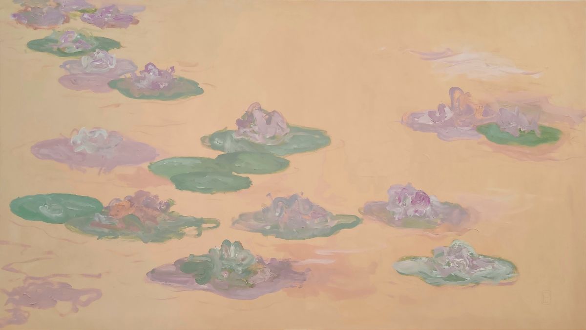 Lo sfondo presenta colori tenui, con una ricerca cromatica che evoca il momento del tramonto. Prevosto offre una costruzione spaziale prospettica: le ninfee sembrano delle navicelle aliene. I fiori risultano infatti senza controllo, elementi di materia che brulica e si muove in maniera disorganizzata e libera.