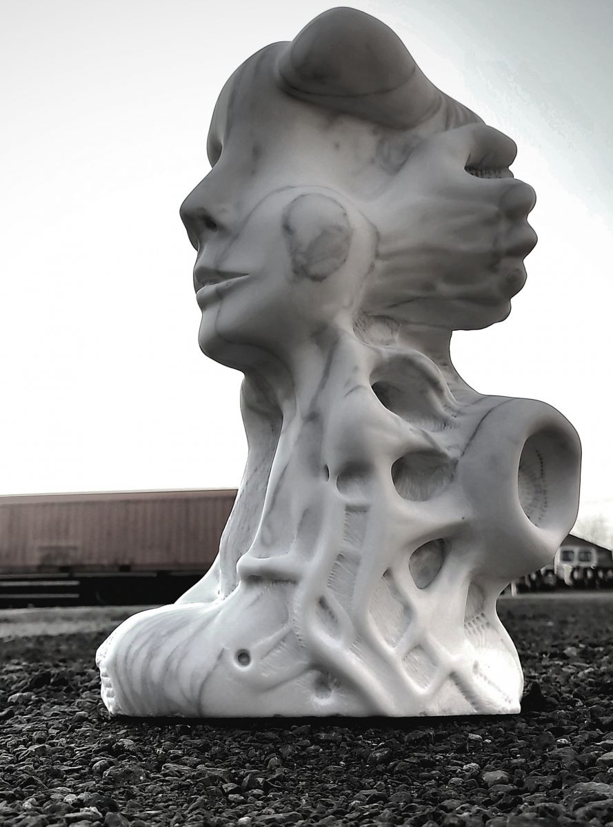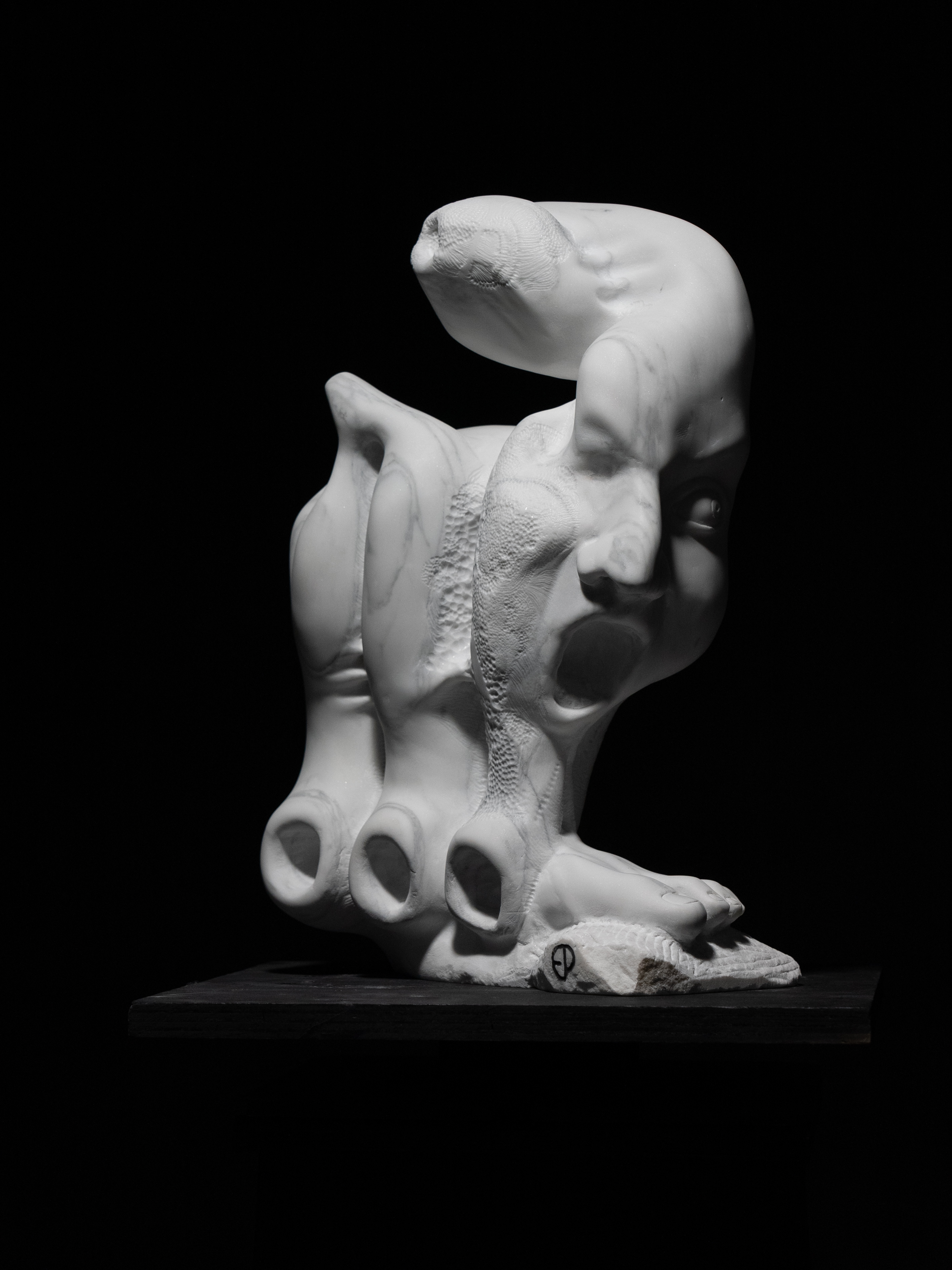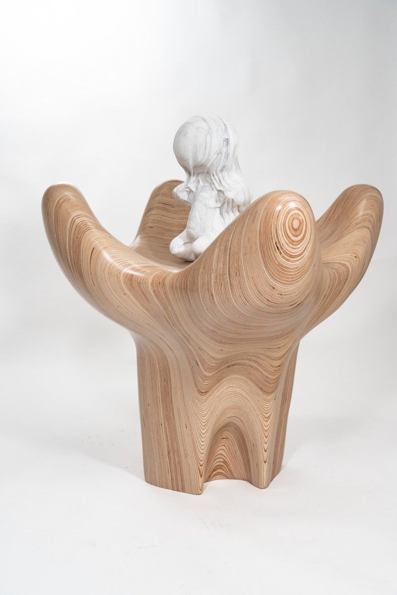 La creatura simboleggia la vita ancora in fase embrionale, tuttavia antica, eterna, per questo che è in marmo, fissata nel tempo.La culla altare è volutamente costruita in legno perché nel tempo un altare può consumarsi o essere distrutto, invece l’oggetto celebrativo permane