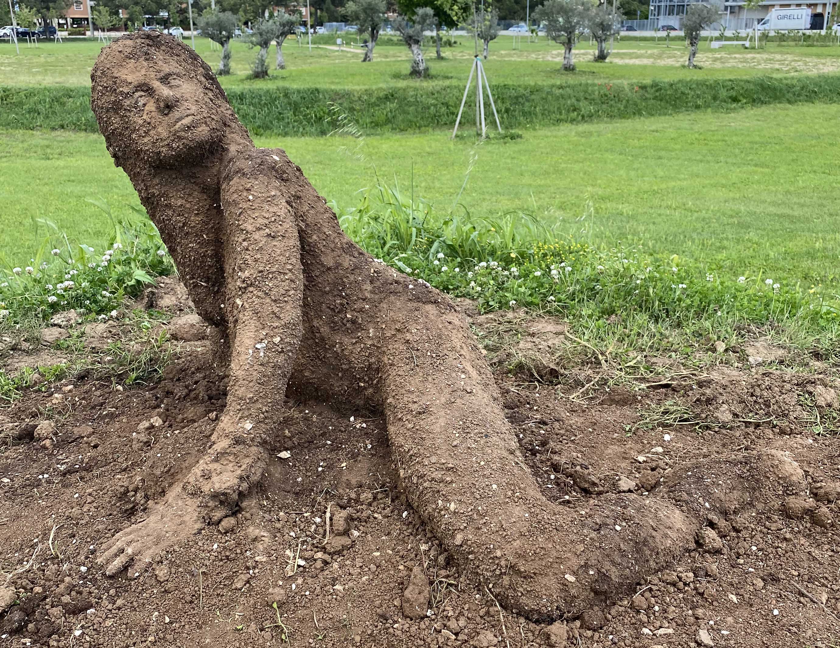 Descizione opera: L’ipotesi di Gaia” è un’opera scultorea che rappresenta una connessione profonda tra l’uomo e la natura, esplorando temi di rinascita, identità e la fragilità del rapporto tra l’umanità e il nostro ambiente. La scultura raffigura una donna sdraiata, la terra che la costituisce sembra fluire senza soluzione di continuità con il terreno circostante, evocando una simbiosi eterna e intrinseca tra l’essere umano e l’ambiente che lo circonda. Il suo volto esprime una mescolanza di emozioni: da un lato, c’è una leggera preoccupazione, un senso di incertezza che si riflette nei suoi occhi che scrutano lo spettatore; dall’altro, c’è una perplessità, come se fosse consapevole delle sfide e delle trasformazioni che l’umanità e il pianeta stesso affrontano. Il rapporto tra la figura umana e la natura è evidente in ogni dettaglio: la terra che compone la scultura si fonde con la terra circostante, creando un legame indissolubile tra la donna e il suo ambiente. La sua posizione sdraiata suggerisce un atto di riposo e contemplazione, ma anche una sorta di vulnerabilità nei confronti del mondo che la circonda. Attraverso ”L’ipotesi di Gaia”, l’artista invita gli spettatori a riflettere sul nostro profondo legame con il principio universale della creazione, e sulla nostra responsabilità di proteggere e preservare l’equilibrio del pianeta. La figura emergente della donna incarna il nostro rapporto innato con la Terra, mentre ci interroga sulla nostra connessione con il tutto e sulla cura che dedichiamo al nostro prezioso pianeta.