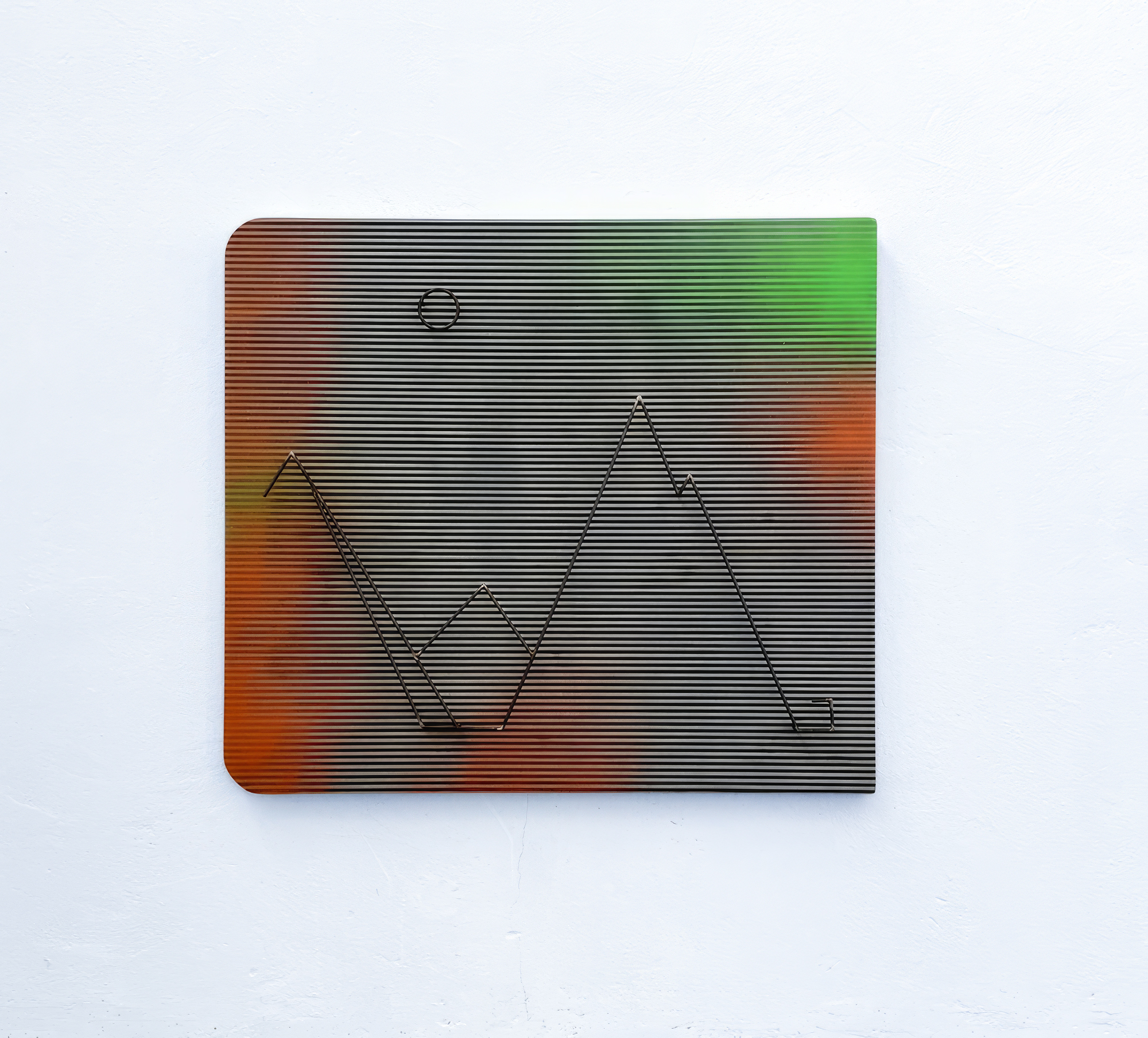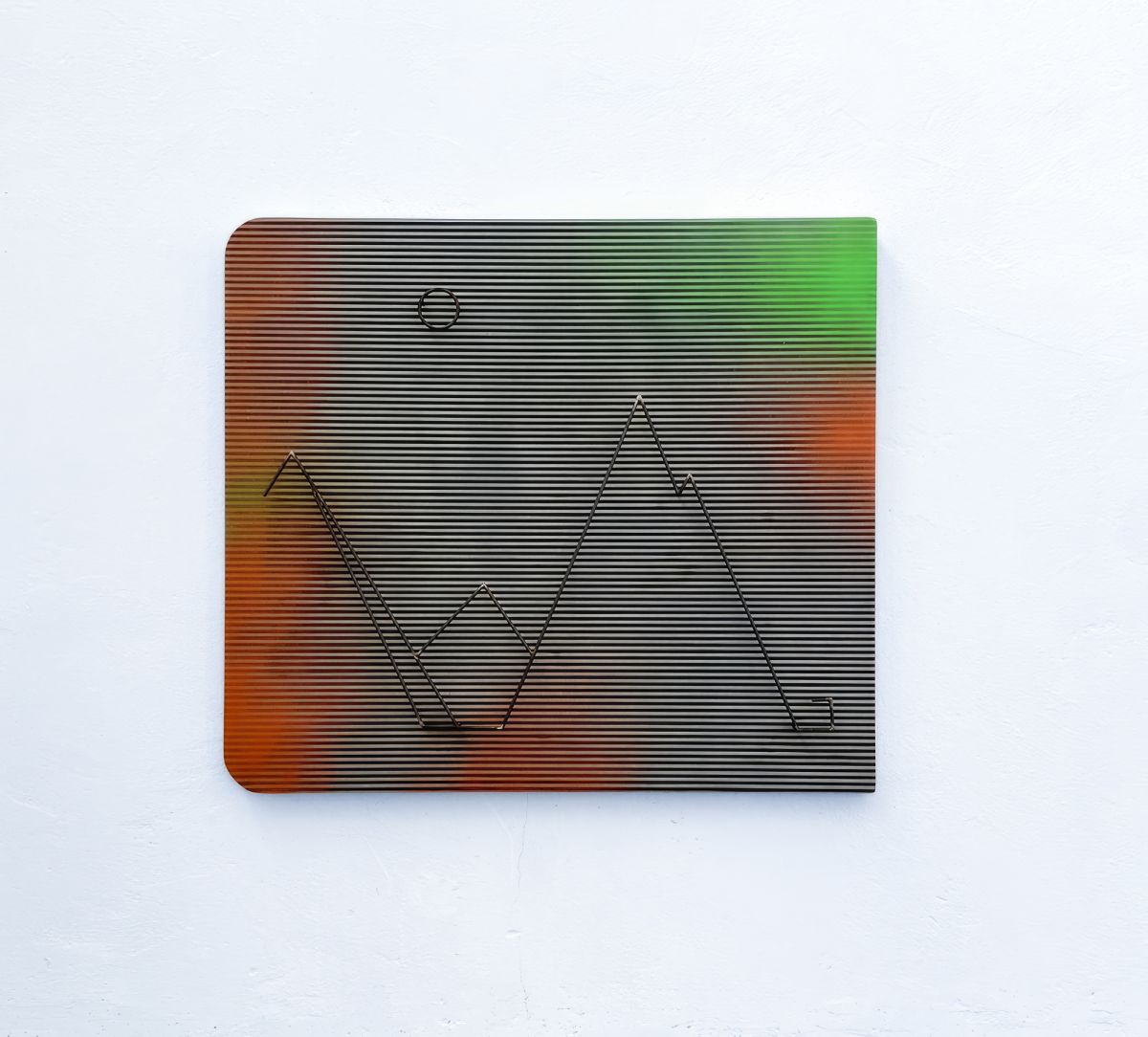 Parte fondante del progetto C-Paisagens#3 (2024 – in progress), l’opera inaugura la prima serie dei Paesaggi Industriali. Paesaggio#2 richiama la veduta di un paesaggio montano percepito dallo spazio di lavoro di una fabbrica. Realizzato in acciaio presagomato saldato e discosto dal piano di superficie, il paesaggio si offre, nella sua apparente semplicità, come sintesi didascalica e netta del reale. Nell’assemblaggio di supporti eterogenei si cela tuttavia un mondo dinamico e caotico, che riporta a un senso di precarietà dei paradigmi esistenti. Paesaggio#2 invita a riflettere sulla condizione di subalternità dell’uomo contemporaneo, stimolando un dialogo tra forma, significato e società.