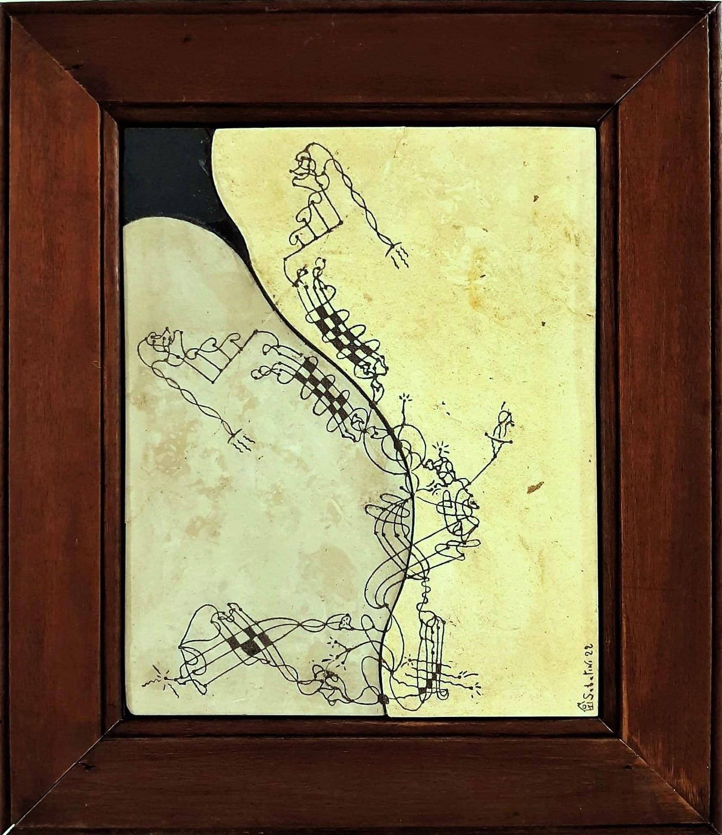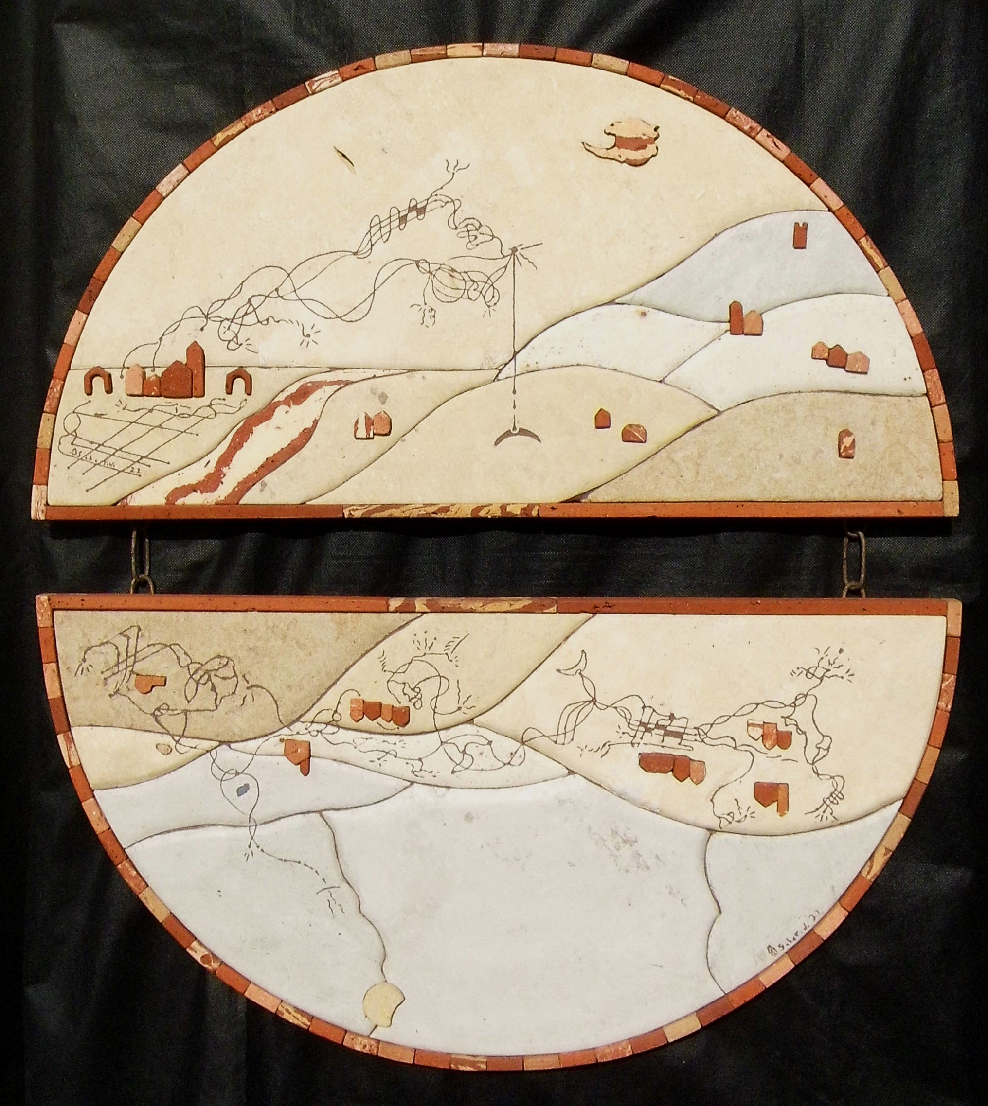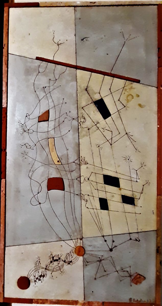 Quarta opera realizzata per la rassegna culturale RADICI (4 autori monferrini ‘800/’900). L’opera è l’interpretazione della vita di Giovanni Camerana, magistrato/poeta Piemontese dell’ottocento, originario del Monferrato. Il dualismo, che è alla base della vita di questo illustre monferrino, viene rappresentato dai due tipi di pietra da cantoni, un calcare di diverso colore grazie alle varie percentuali di argilla dovute alla profondità del mare del Miocene (3-25milioni di anni); la sensualità, la sofferenza della vita, il suo fine cioè la morte, sono nella pietra nera. Nell’incisione troviamo la sua vita di studi, il lavoro mai amato di avvocato e magistrato, il suo amore per la cultura, la poesia, l’arte, l’adesione in parte alla scapigliatura e l’intrecciarsi di questi elementi nella sua vita fino ad arrivare a vivere due vite parallele contrapposte che lo porteranno a 60 anni, all’ennesima crisi interiore, al suicidio.