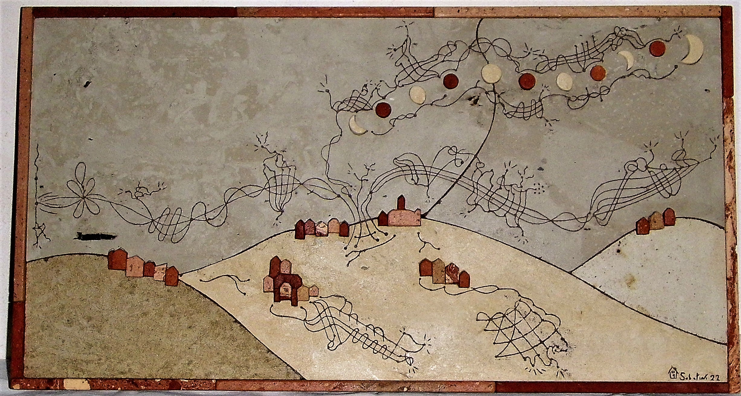 “Il Monferrato in Salotto” rappresenta la sintesi del suo lavoro, lavoro nato da sé, da sue idee, mettendo a frutto la capacità manuale, l’esperienza sul materiale e delle tecniche edili. Questo prodotto è nato dall’amore, dalla passione per il territorio Monferrino e dall’esigenza di comunicare la bellezza, profondamente incastonata, come una pietra preziosa, nel materiale usato, una bellezza tutta da scoprire con una attenta osservazione unita a immaginazione e voglia di sognare.