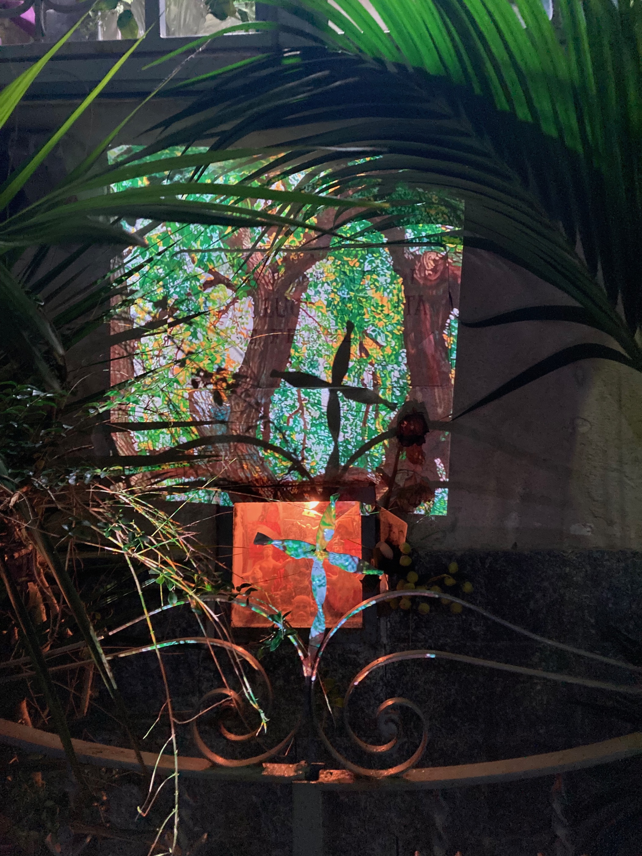 In March 2023, I worked outside in Naples, Italy, projecting images of paintings from the Natural History series. I propose to continue with this project, altering it to adapt to different places. Projecting images of paintings of trees onto living trees and plants is extraordinary. The project is two-part: 1. delicate and detailed oil paintings; 2. projections of the paintings.