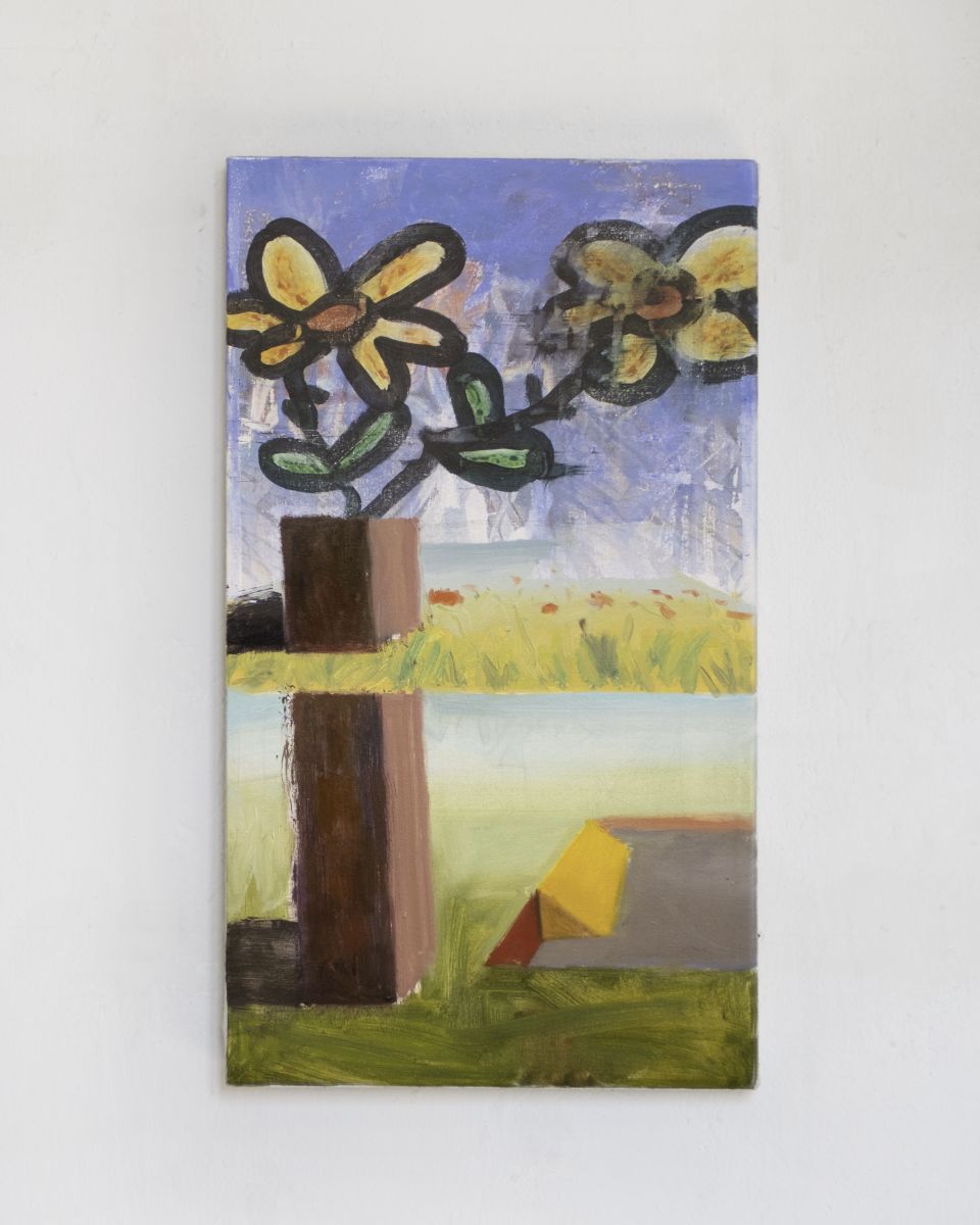 In dialogo, la parte superiore riprende, attraverso il transfer di stampe e la pittura , la decostruzione dei fiori sottostanti, scomposti e riprodotti secondo lo stile della pittura digitale amatoriale (paint, instagram) e il glitch visivo di un file jpg corrotto.