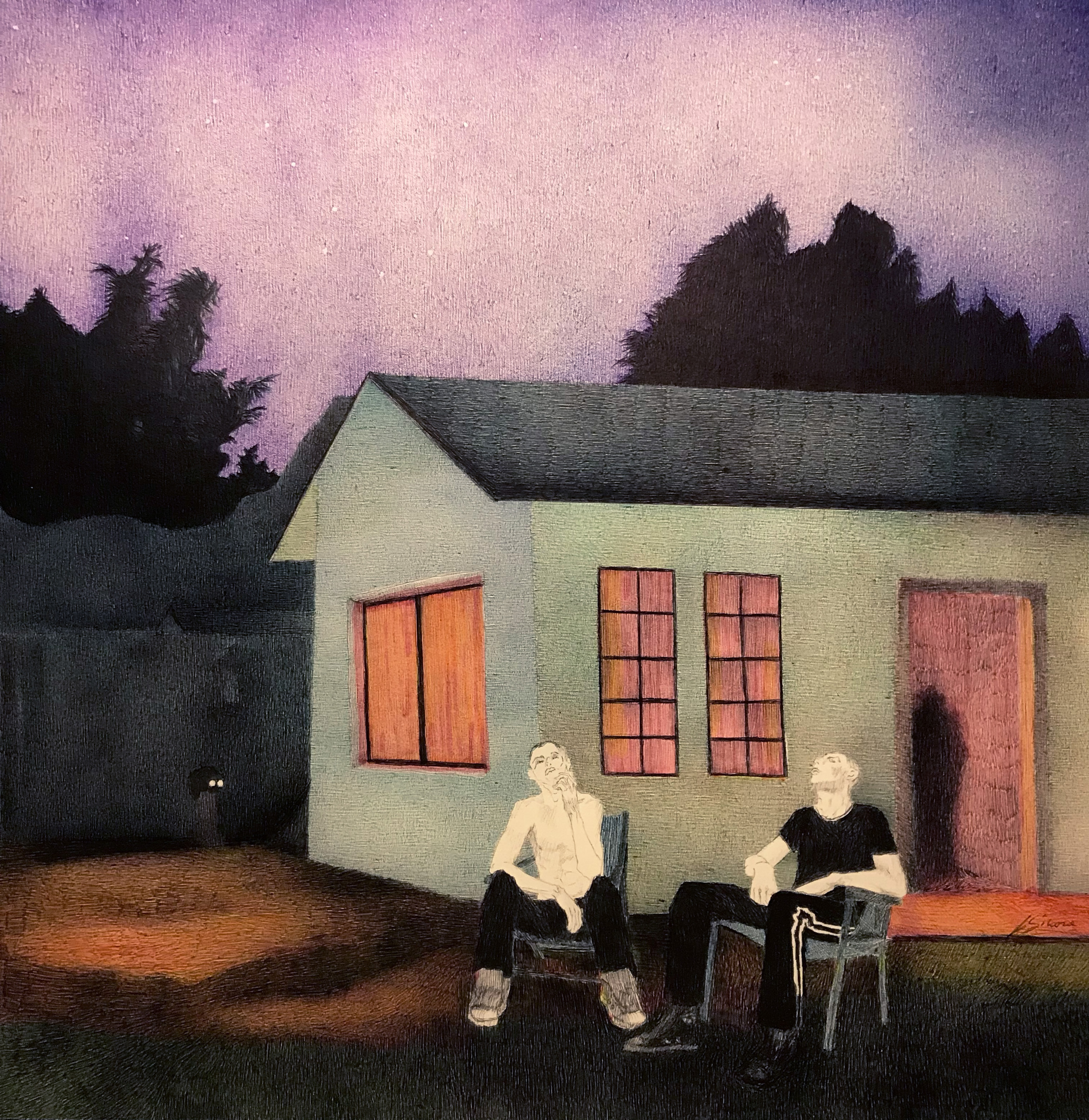 Friend of the night penna bic nera e colorata mista a evidenziatore, carta 35 x 35 cm